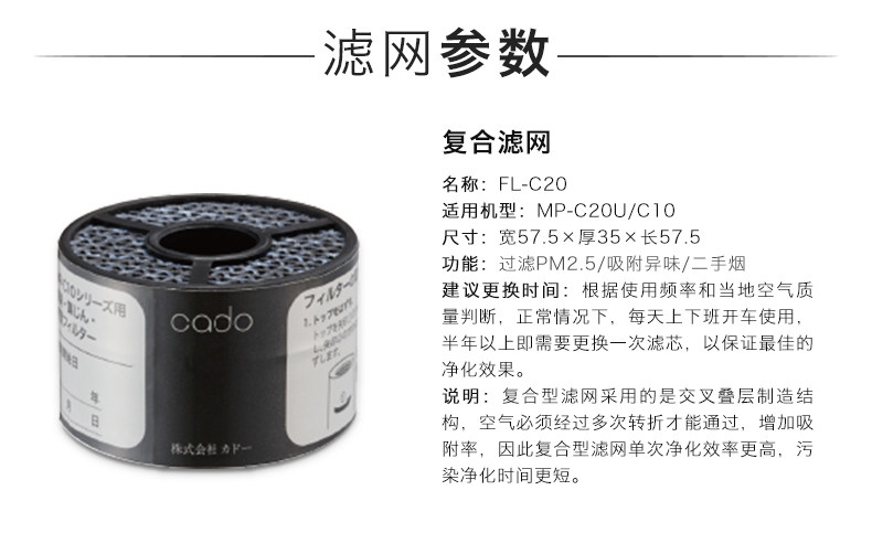 cado车载空气净化器滤芯MP-C10 C20U通用滤网原装FL-C10包邮真品