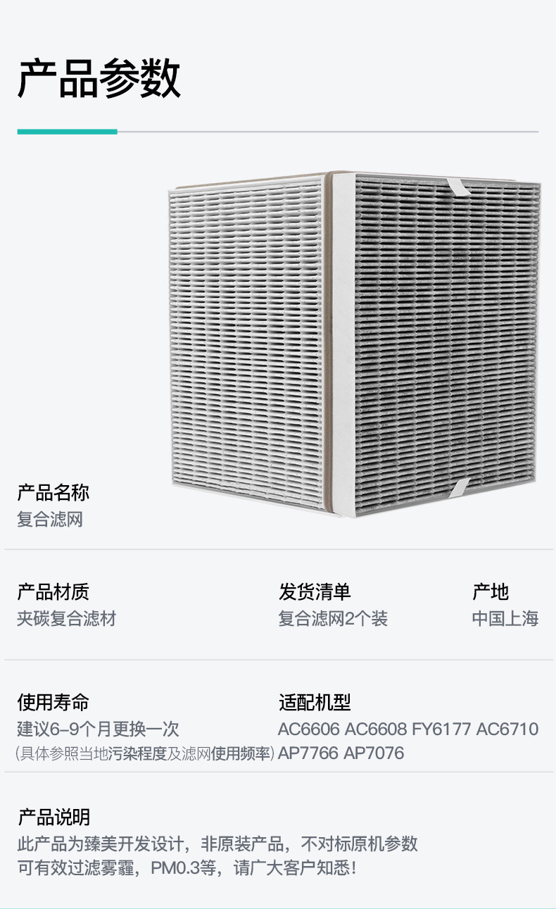 [臻美电器旗舰店净化,加湿抽湿机配件]适配飞利浦空气净化器滤网AC6606月销量13件仅售348元