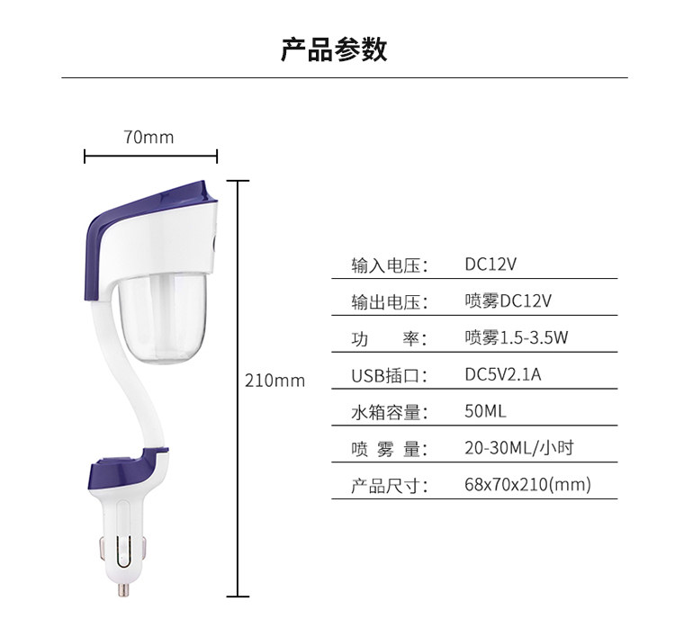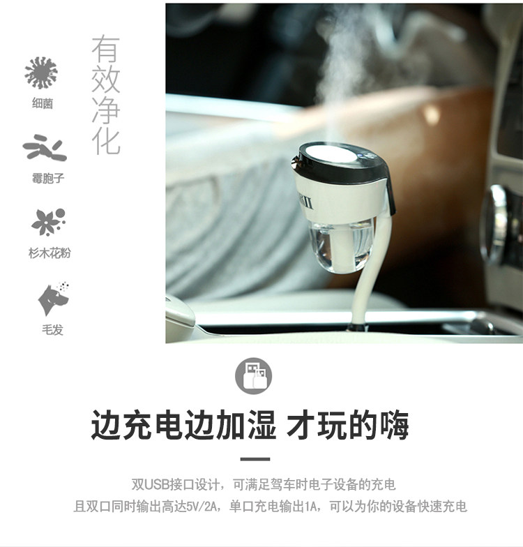 车载加湿器喷雾车充二合一空气净化器便携式迷你静音车用香薰雾化