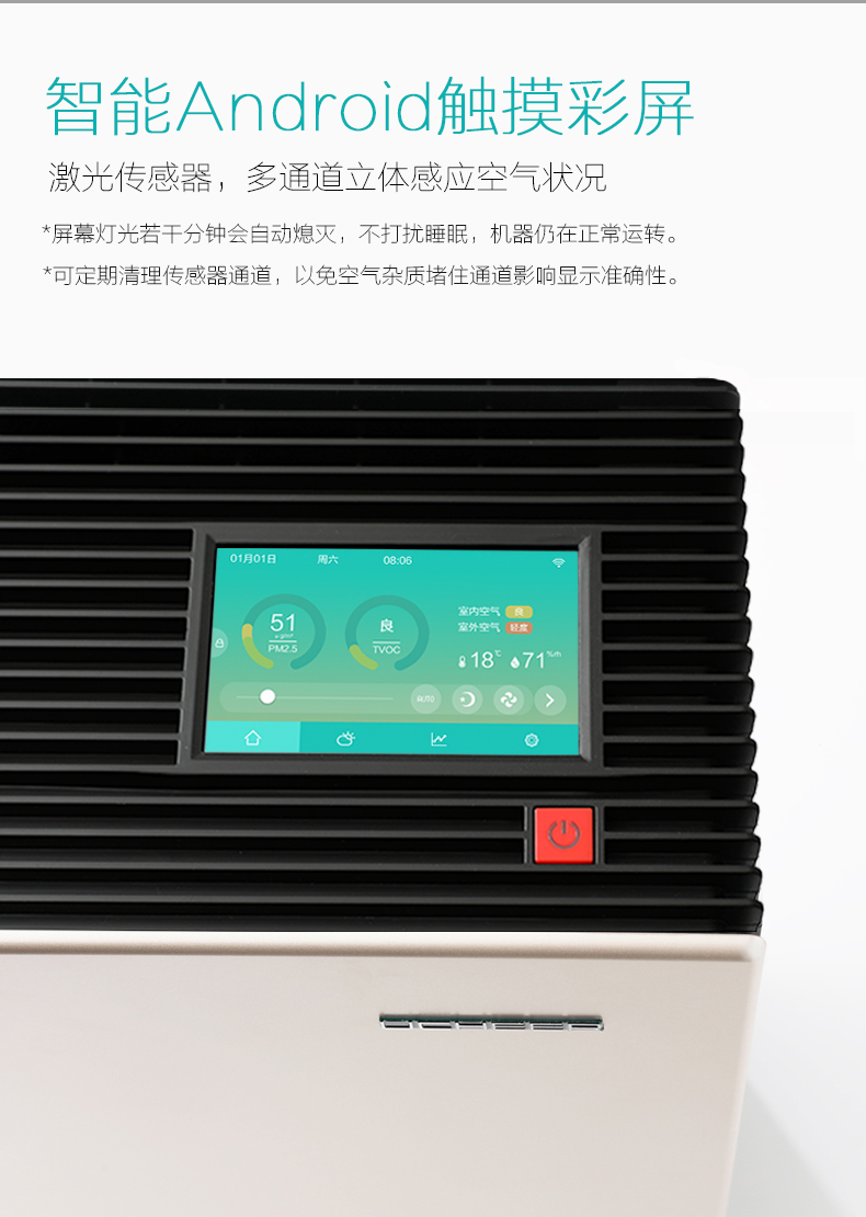 看浙江大学一个教授的评价文章买的,T70的彩屏看着挺舒服的,用了几天暂时没问题。新装修的房子,还没入住,关门窗大风开了2天,以前进去呆久一点会嗓子发干,眼睛不舒服,现在好像没有了?神奇的事。就是系统时间好像不对,待会问下怎么调准