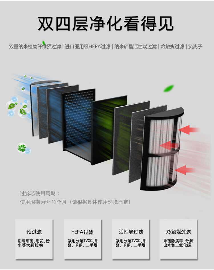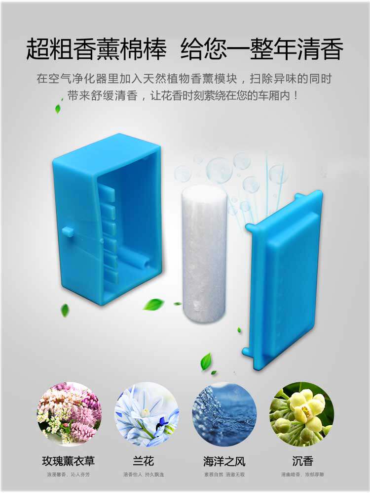 • 功能:消除异味 过滤灰尘 杀菌 吸收TVOC气体 芳香功能