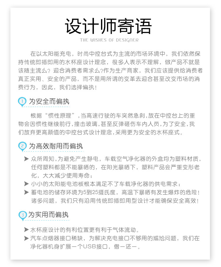 • 净化原理:HEPA滤网 活性炭 负离子