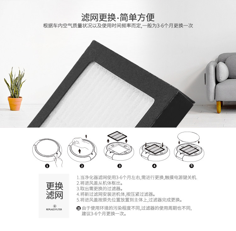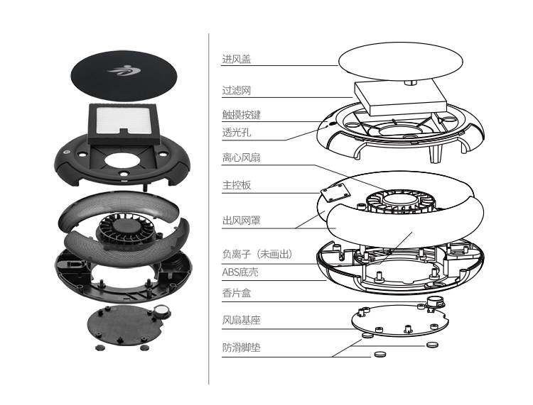 • 功能:消除异味 过滤灰尘 杀菌 吸收TVOC气体 芳香功能