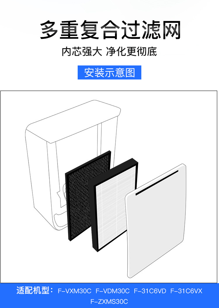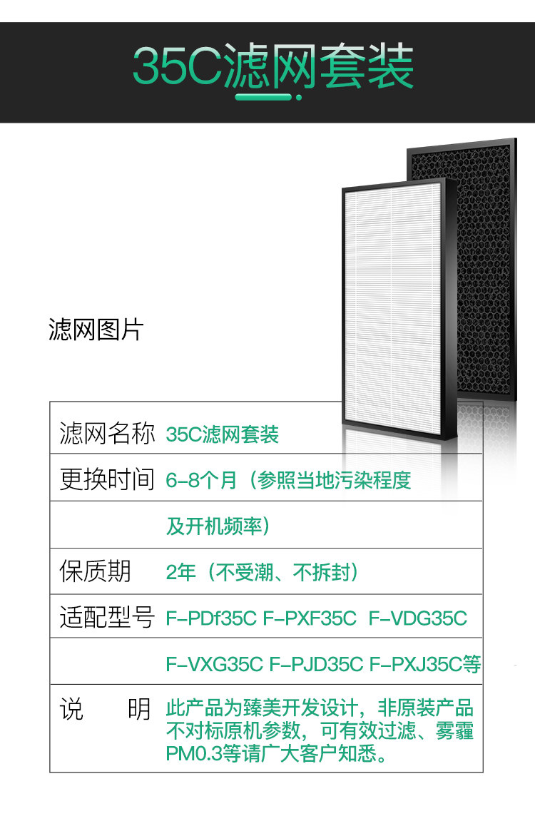[臻美净化器滤网品牌直销店净化,加湿抽湿机配件]适配松下空气净化器过滤网F-PDF/月销量3件仅售88元