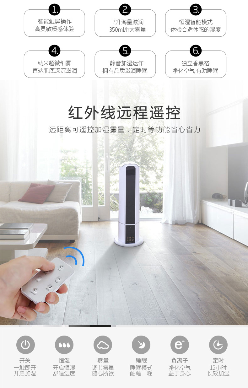 • 功能:空气过滤 除菌 负离子 香薰 纯净加湿