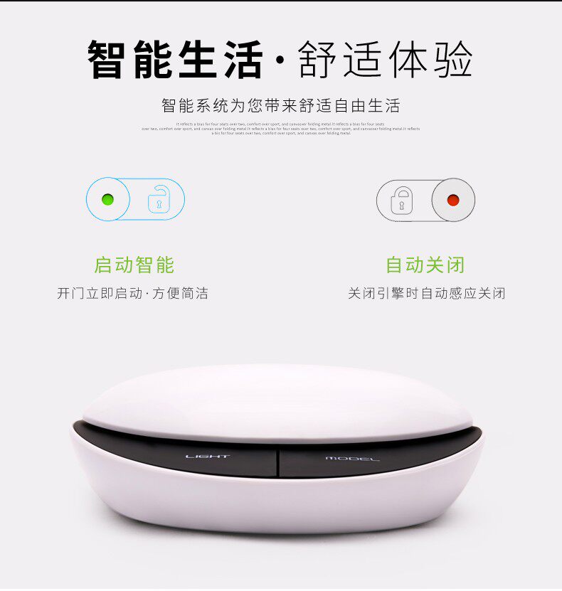 1. 第一种模式:(蓝光)随车启动:打开车门开始工作,关闭车门2分钟停止工作。