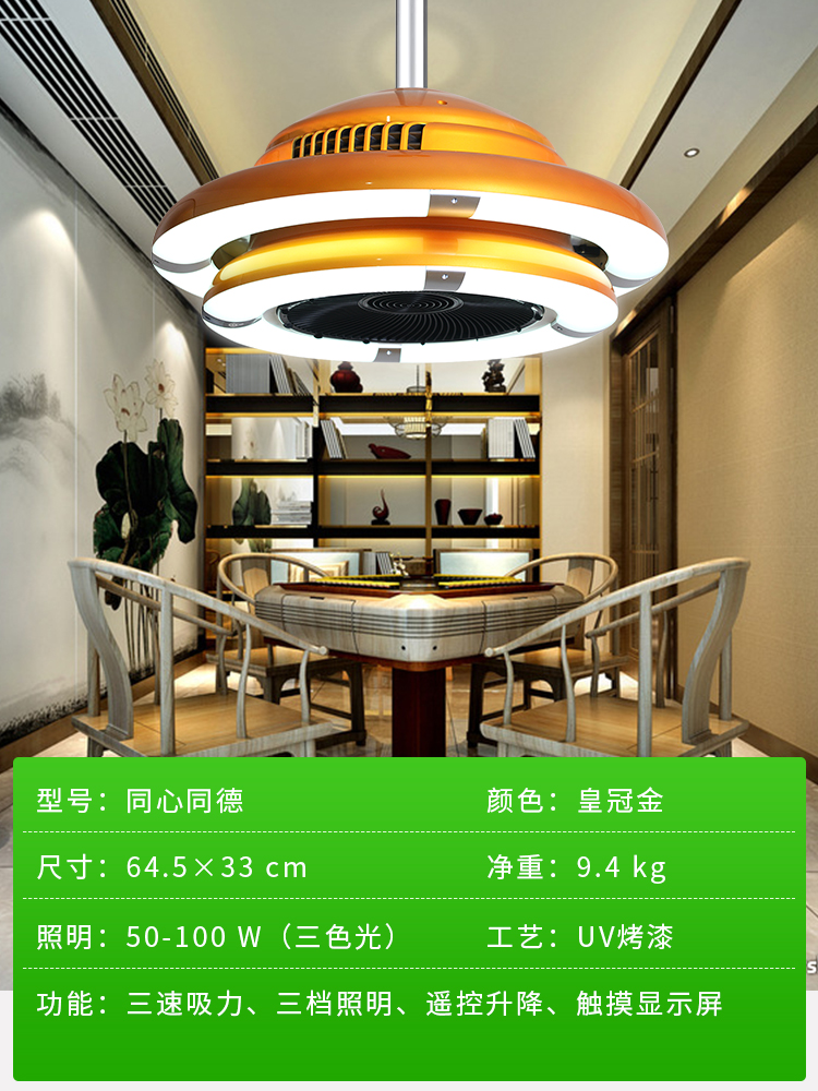 麻将机全自动棋牌室净化器吸烟灯家用灯饰空气净化器抽烟机排烟机