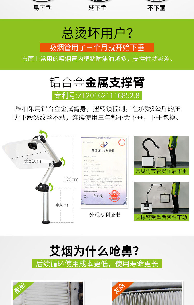 酷柏艾灸烟雾净化器吸烟机排烟器抽烟移动式医疗养生馆灸床过滤器