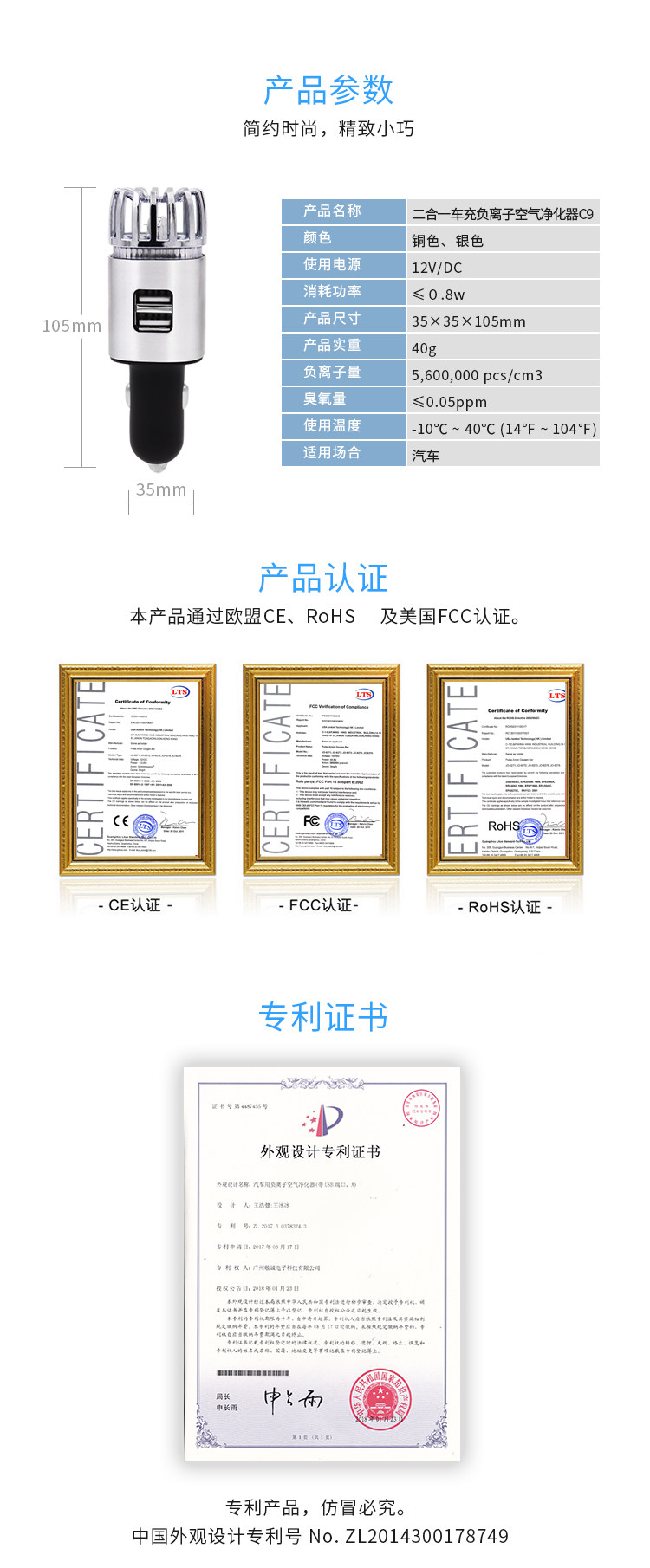 • 功能:消除异味 杀菌 吸收TVOC气体