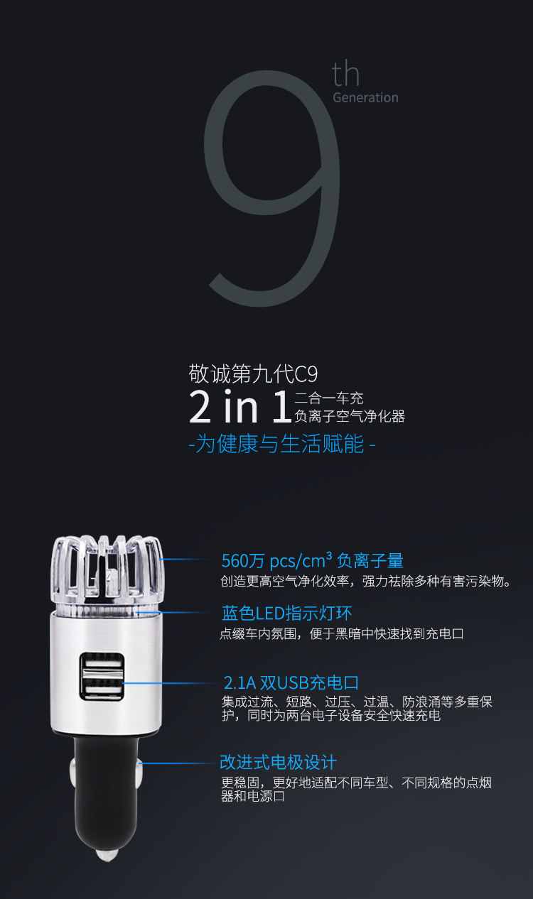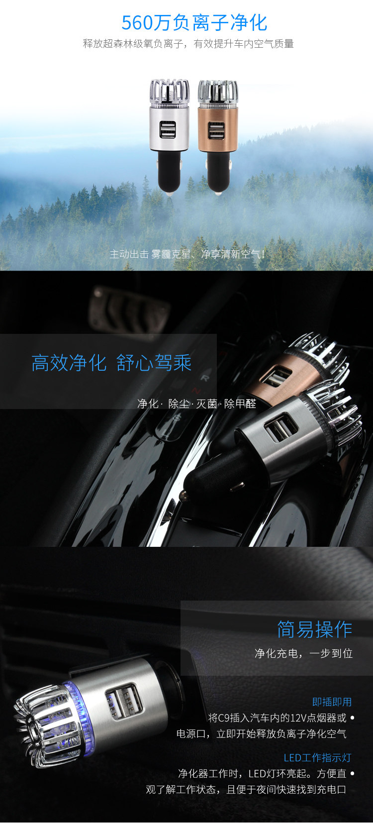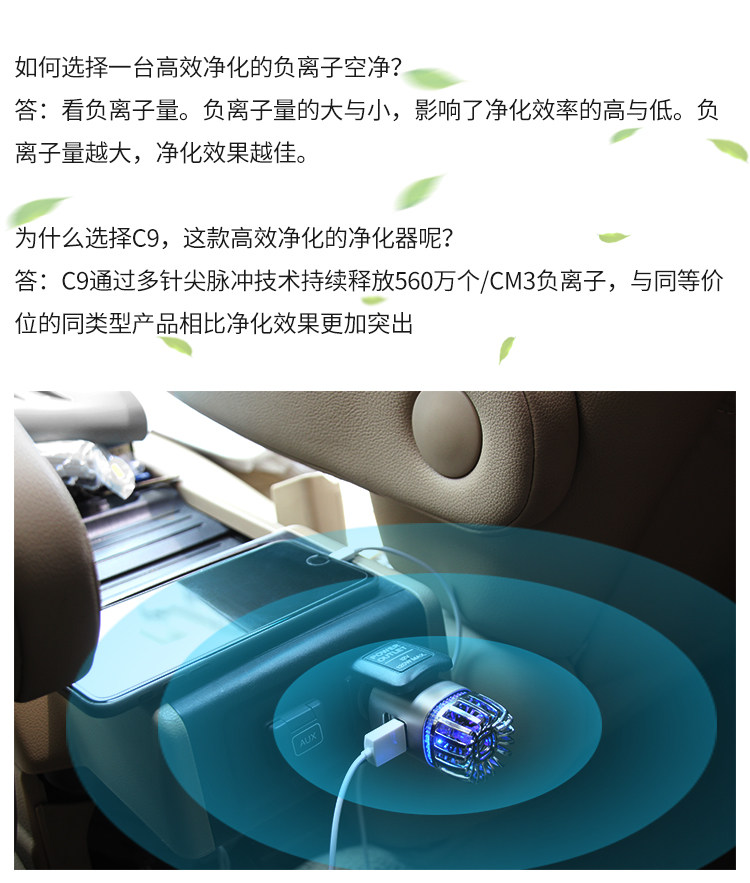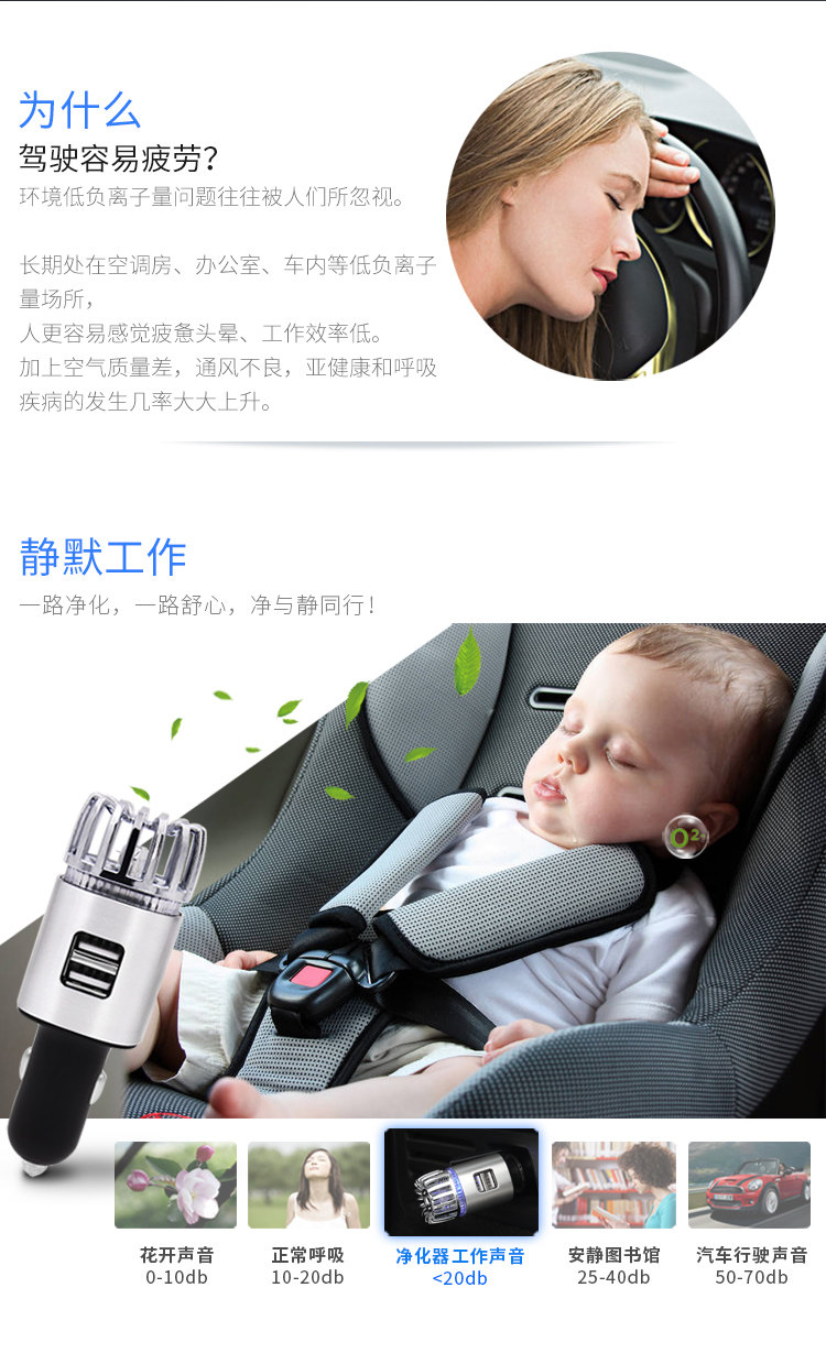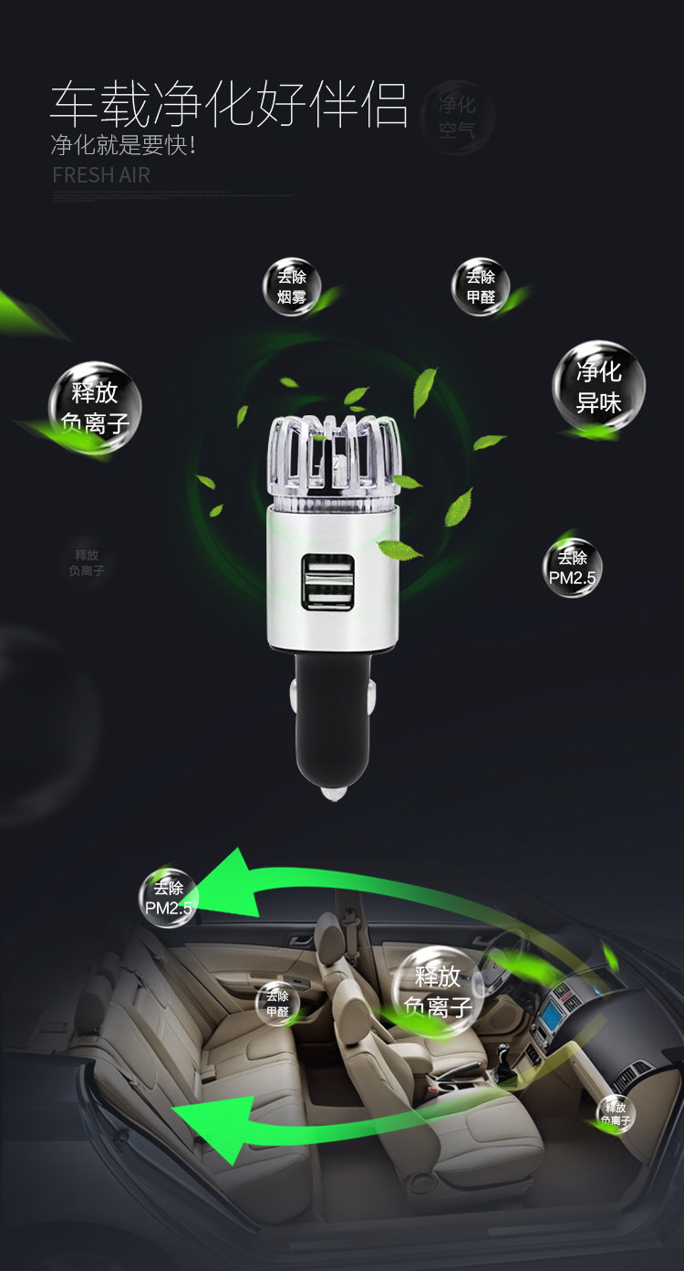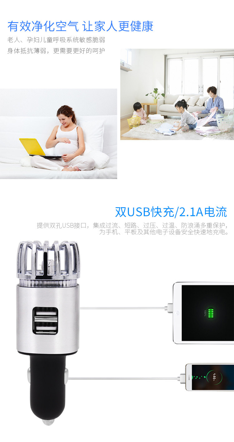 车载空气净化器消除甲醛异味车内用pm2.5负离子负氧发生器usb杀菌