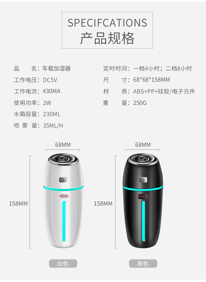 [定秦车品专营店车用氧吧,空气净化器]车载加湿器喷雾消除异味汽车空气净化器月销量2件仅售38元
