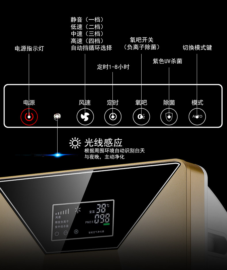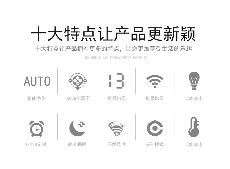 • 功能:定时 除VOC 除颗粒物 除甲醛 除烟除尘 除雾霾