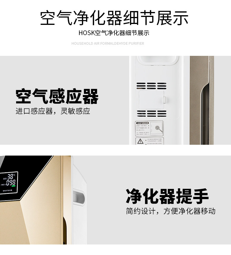HOSK空气净化器家用除甲醛二手烟除尘雾霾PM2.5办公室卧室内氧吧