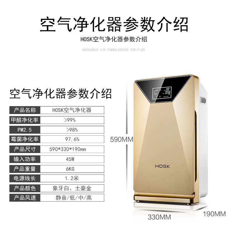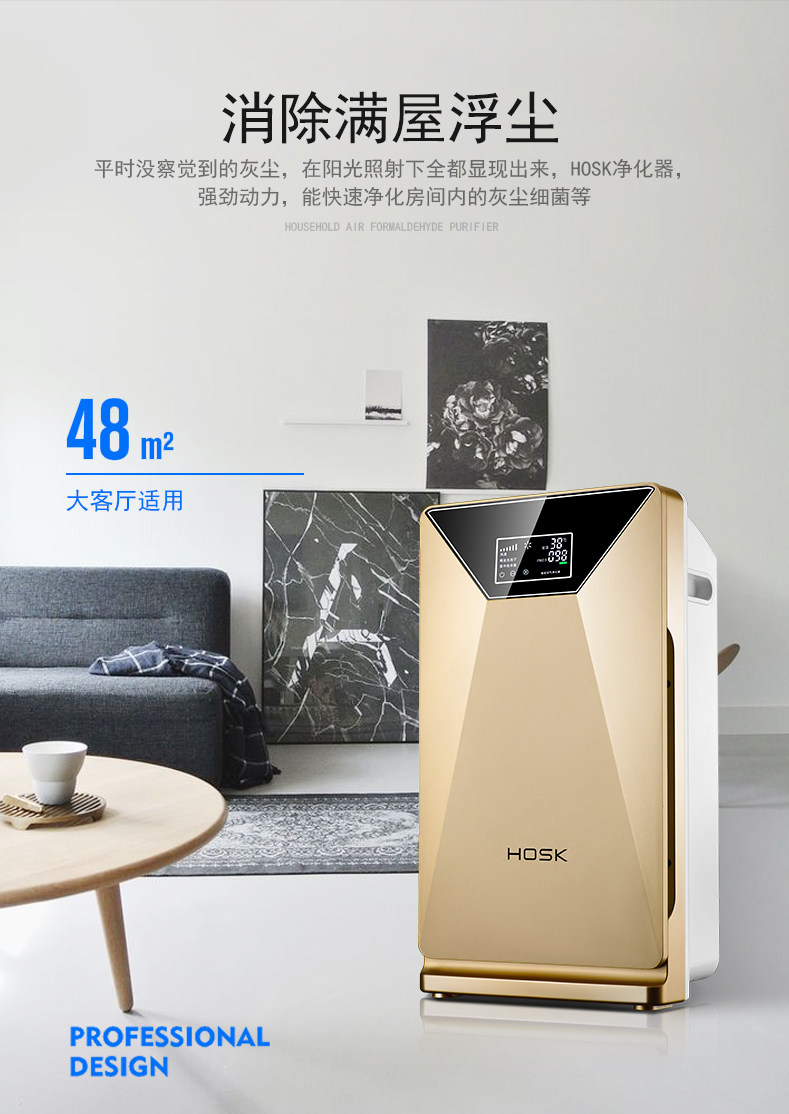 [洛珂斯电器空气净化,氧吧]HOSK空气净化器家用除甲醛二手烟除月销量0件仅售1999元
