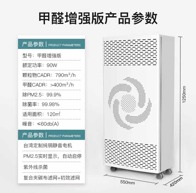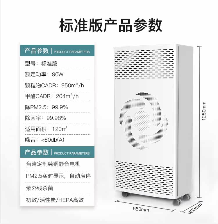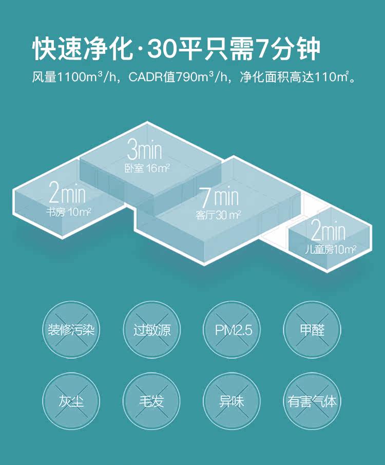 • 功能:定时 除花粉 除颗粒物 除甲醛 除烟除尘 杀菌 除雾霾 除菌