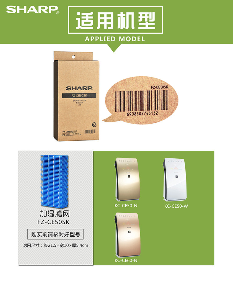 夏普原装加湿滤网FZ-CE50SK适用空气净化器KC-CE50-N/W/KC-CE60-N