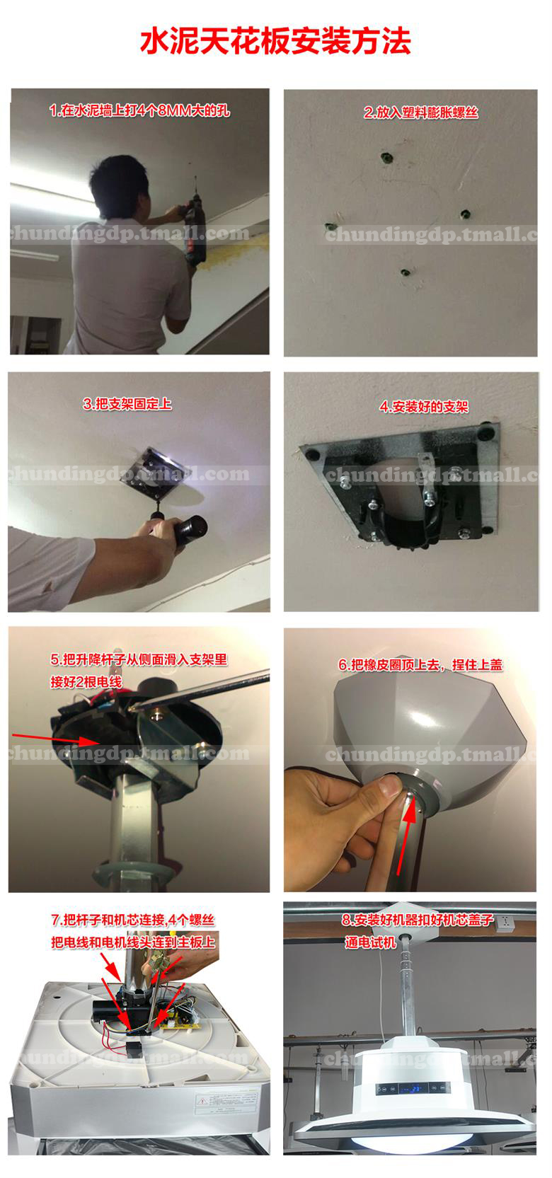 安装方法:一般常见这以下4种天花板,都是可以安装的,方法和安装一个水晶吊灯差不多方便。