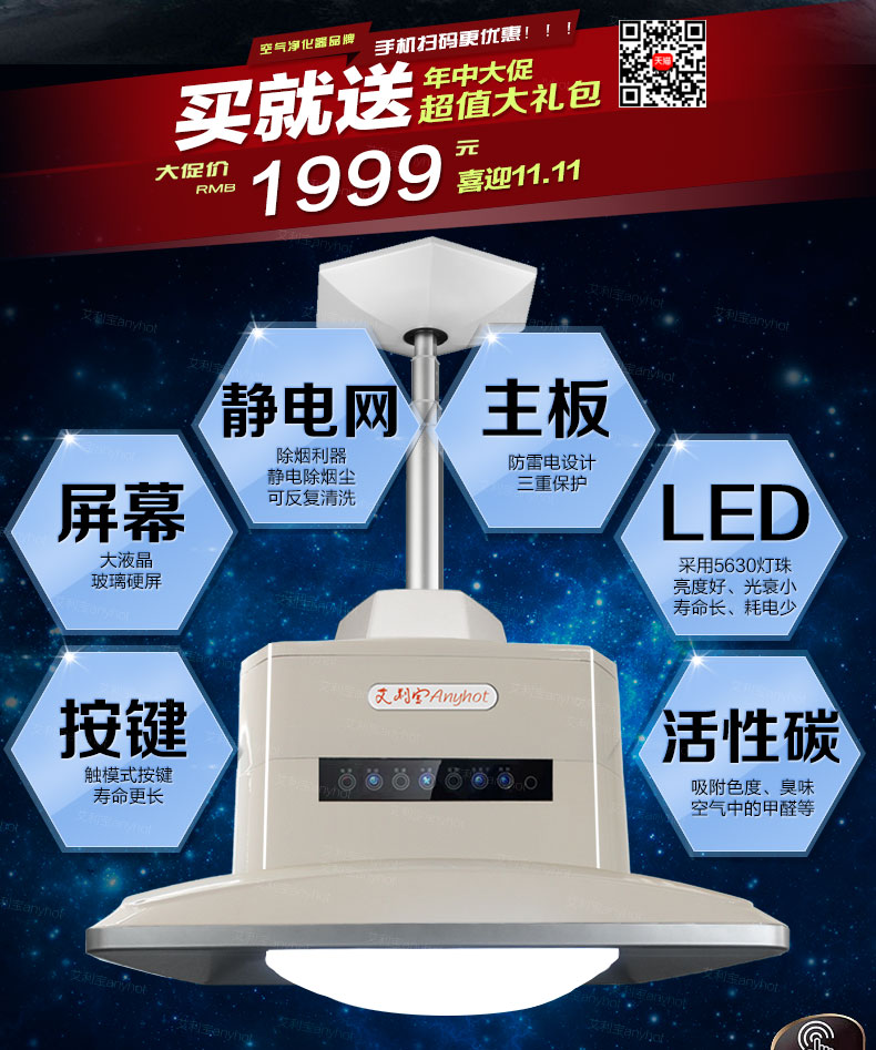 (64)[piobani旗舰店吊灯]棋牌室吸烟灯麻将机吸烟灯棋牌室空气净月销量99件仅售780元