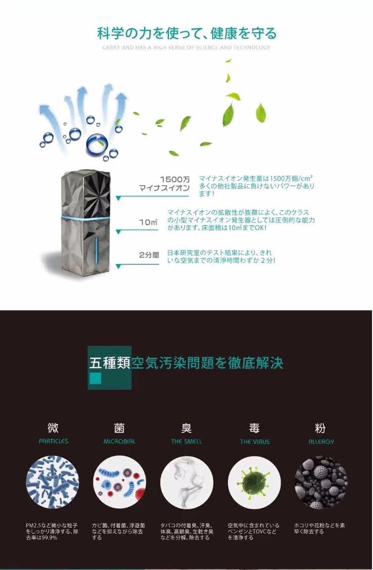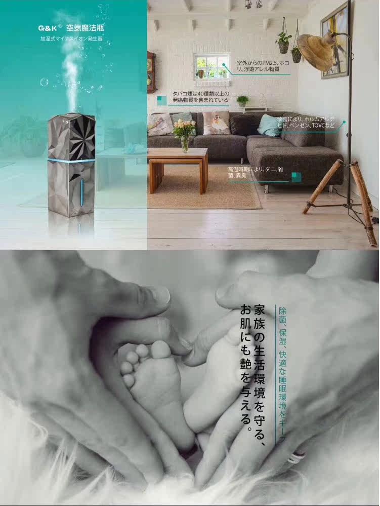 日本G&K负离子空气净化加湿除菌器空气魔法瓶家用车载便携充电