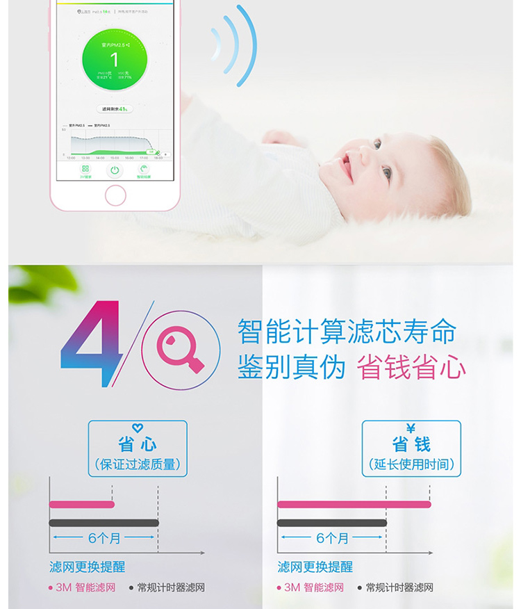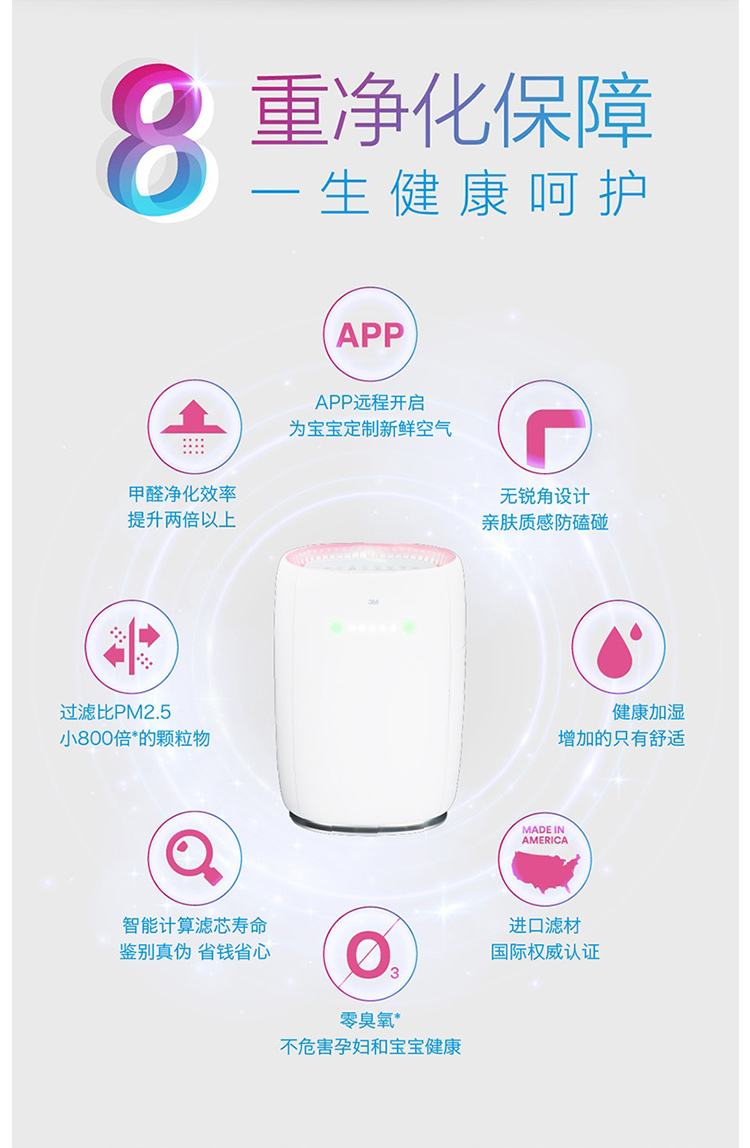 3m空气净化器KJ455F-8H智能母婴家用 加湿 除甲醛细菌过敏原PM2.5