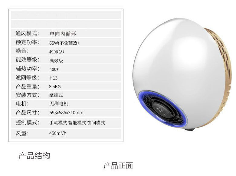 [山东净的环境电器有限公司空气净化,氧吧]家用壁挂式新风机空气净化器除甲醛除雾月销量0件仅售4999元
