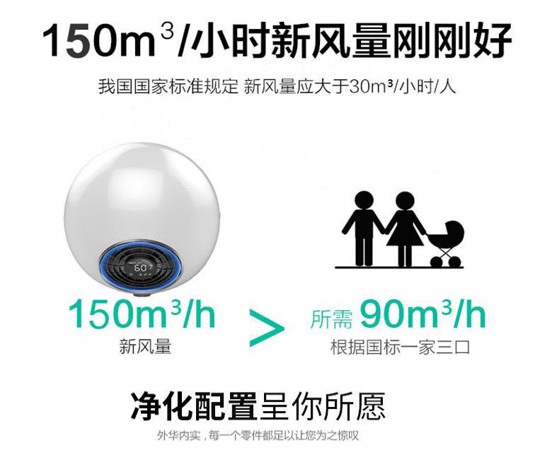 家用壁挂式新风机空气净化器除甲醛除雾霾除细菌过敏原pm2.5