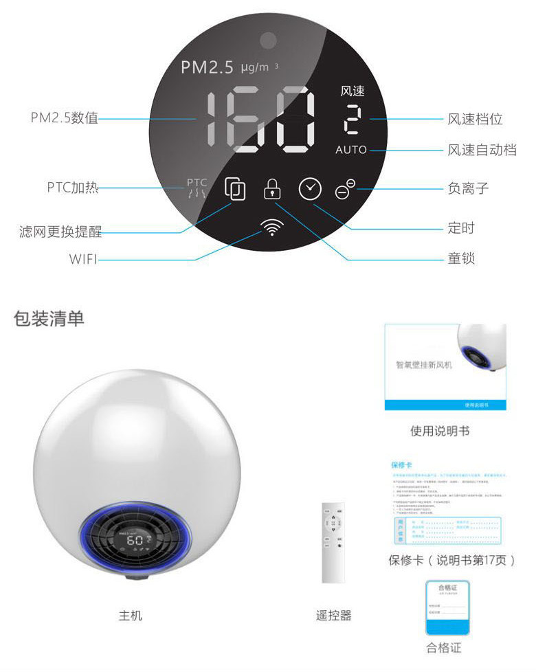 • 功能:除花粉 除颗粒物 除甲醛 除烟除尘 杀菌 除雾霾 除菌, 负离子 除菌
