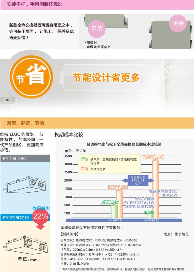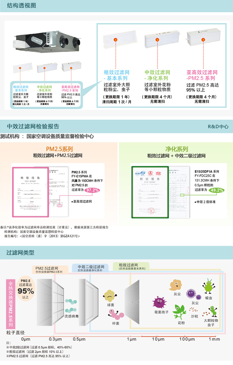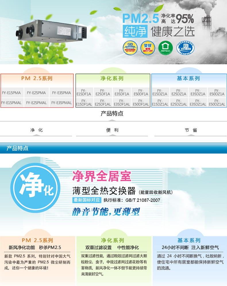 松下新风系统空气净化过滤全热交换器 净化型FY-E25DF1A