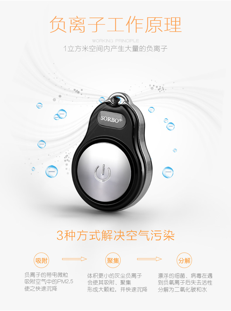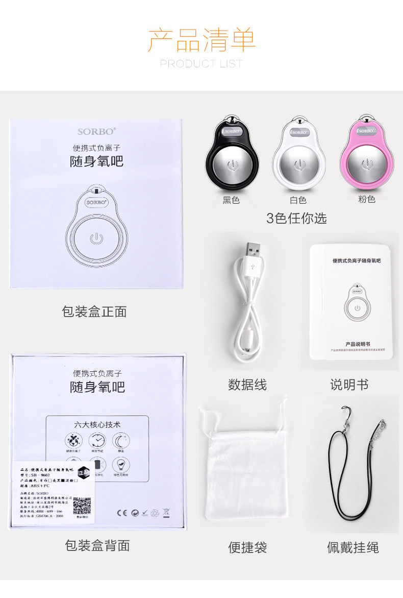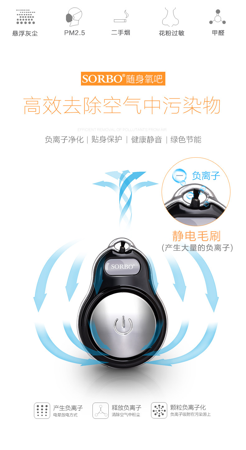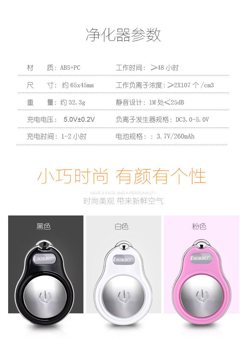 SORBO便携式空气净化器负离子迷你随身氧吧除甲醛防雾霾生日礼物