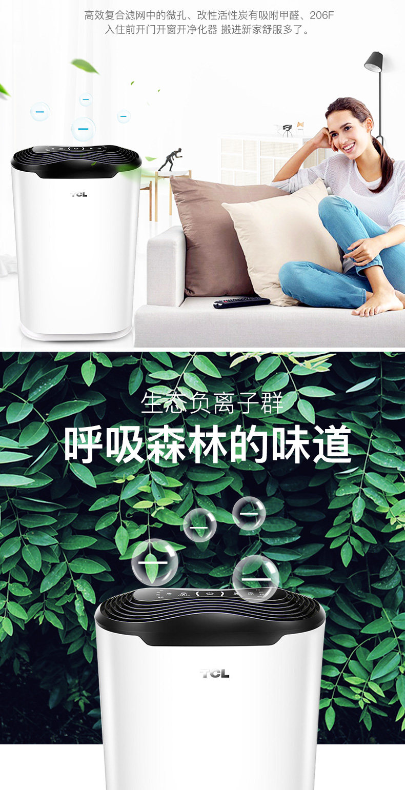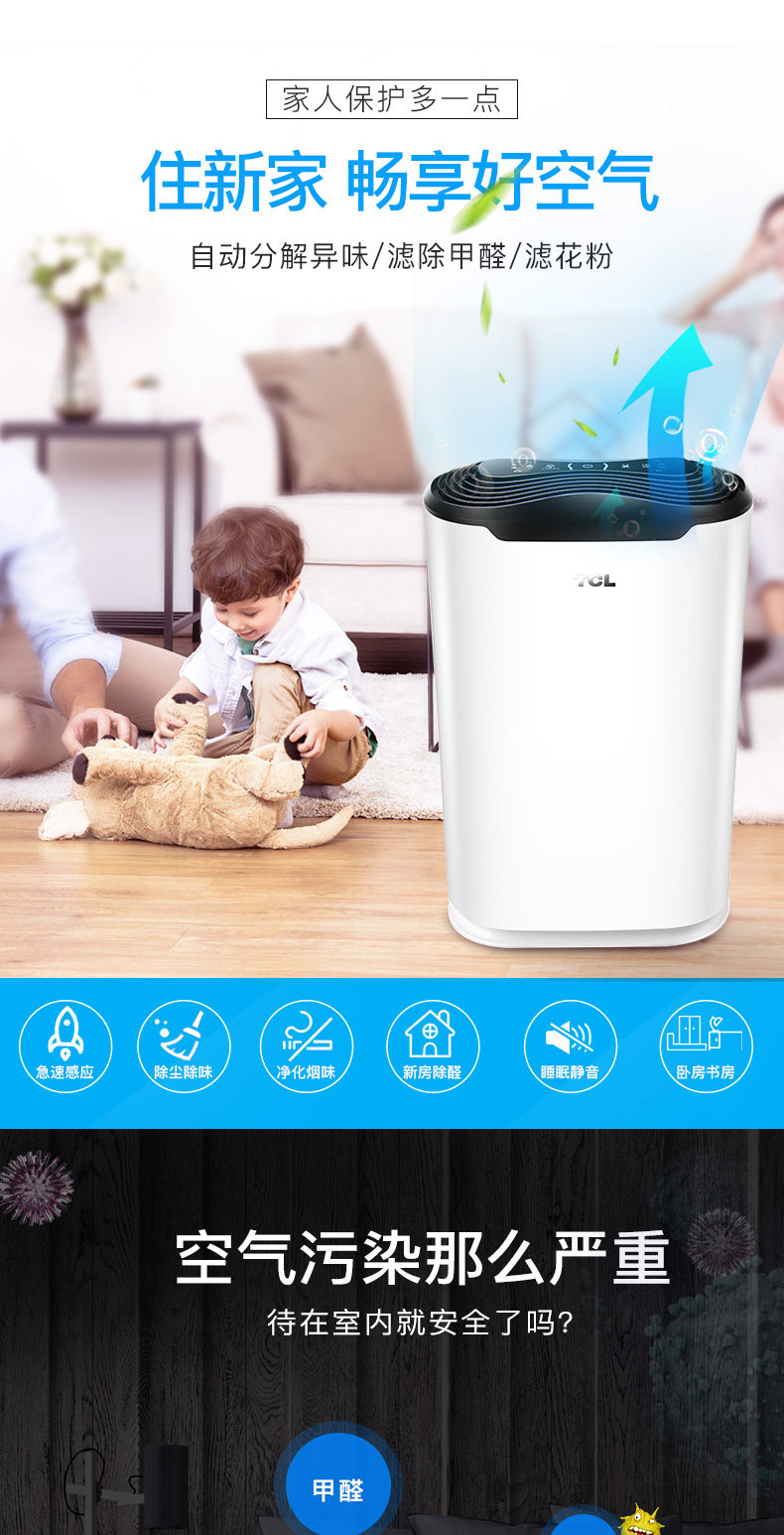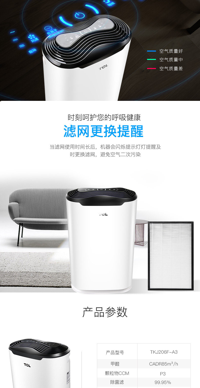 TCL 空气净化器家用室内除甲醛除烟除尘甲醛雾霾TKJ206F-A3