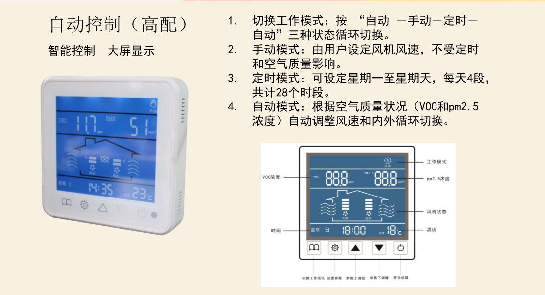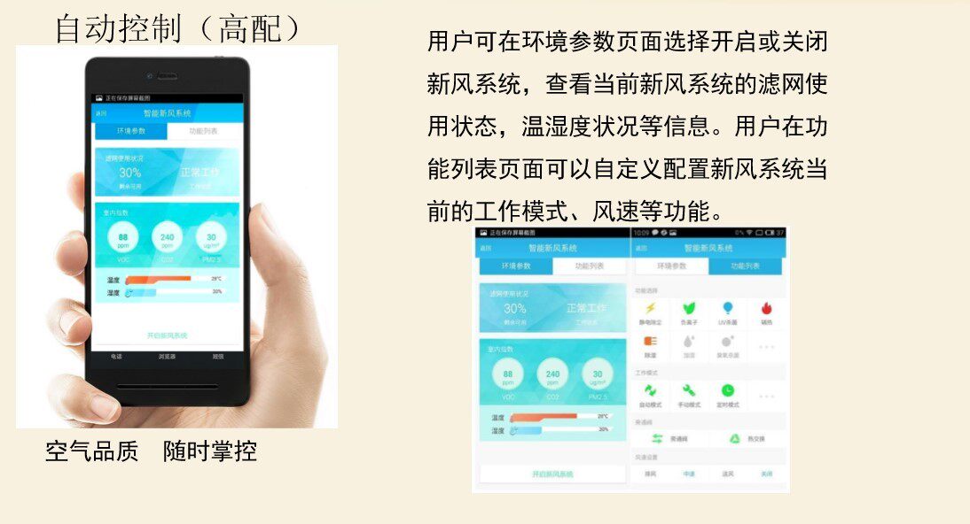 1.壳体采用灰白配色,层次分明; 2.采用蓝红塑料风口法兰,外形美观,且能明确指示施工时接管方式(红色 接排风,蓝色接新风 3.壳体采用磨砂工艺(常用于笔记本外壳,高档家具表面处理),增强防滑 性能,减少指纹的残留。