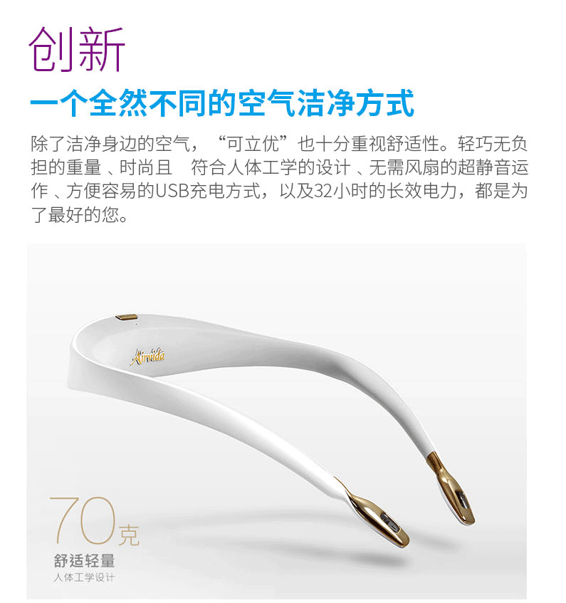 Airvida可立优便携颈式穿戴空气净化器PM2.5防雾霾神器日本直邮