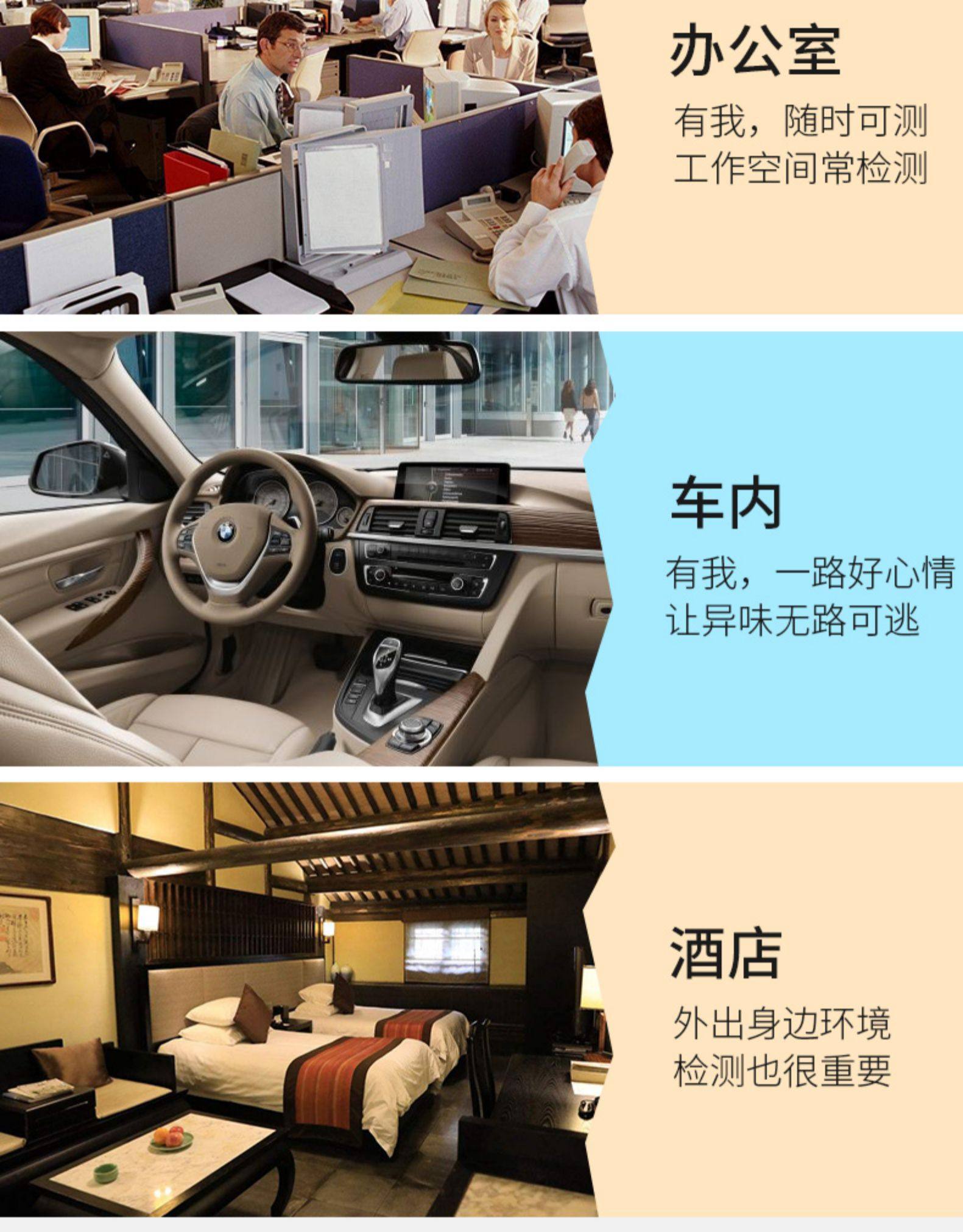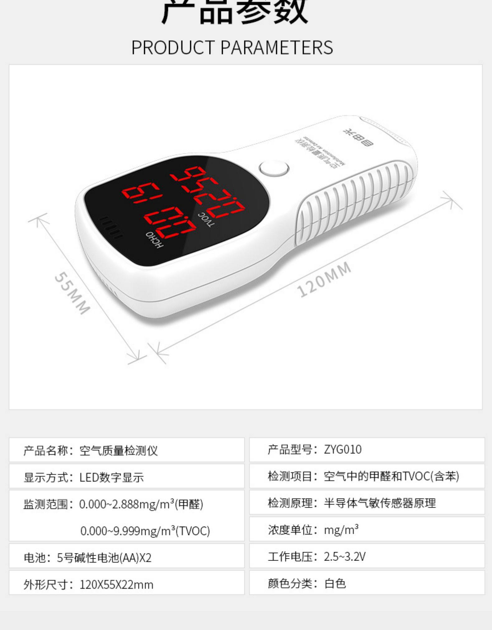 测试仪小巧灵便,操作简单。测试室内空气质量,可提高健康意识,现在天气渐暖,要经常开窗通风。