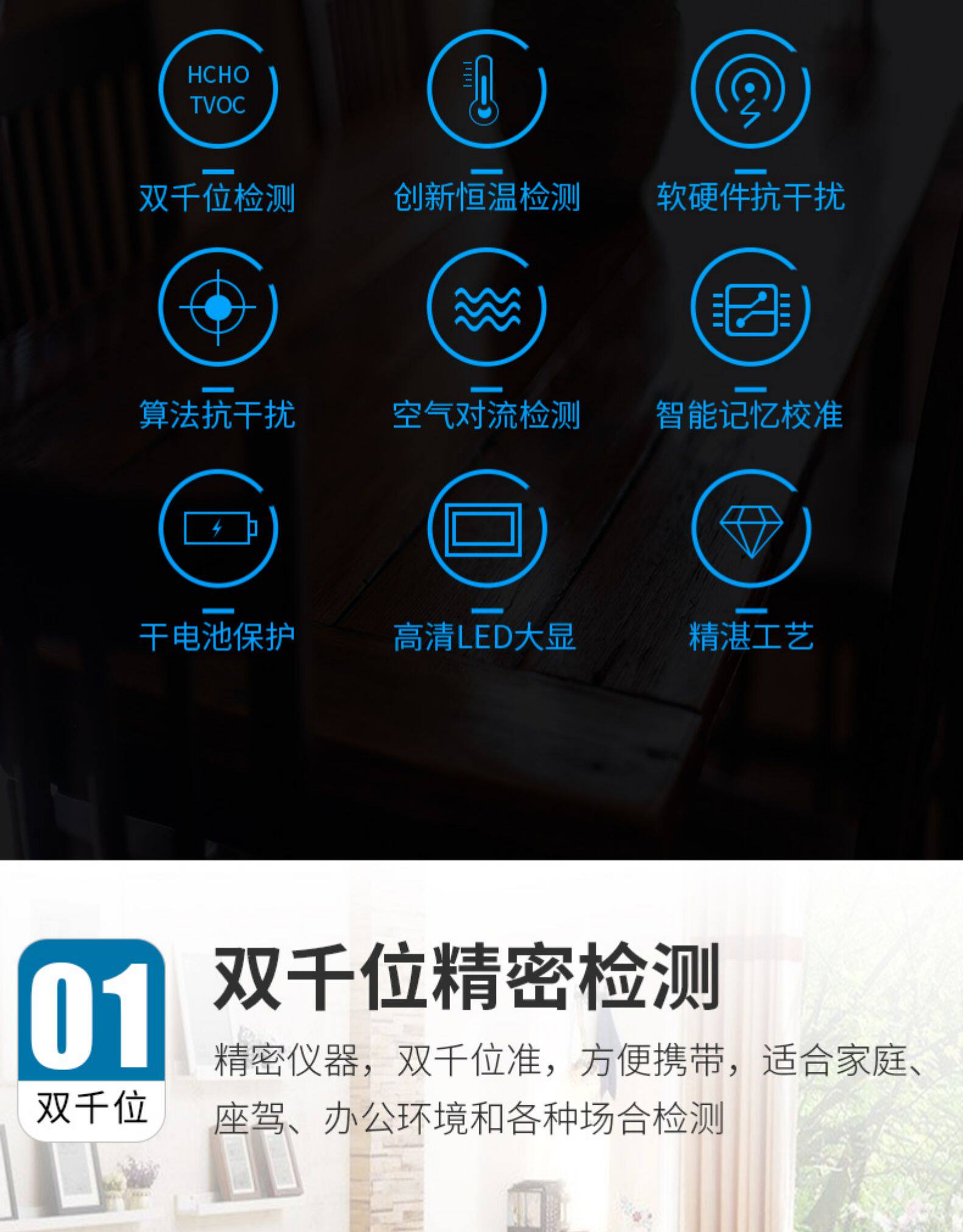 测量精准,数据清晰,是专业的便携式测量设备,新家放了一部,感觉心里踏实多了