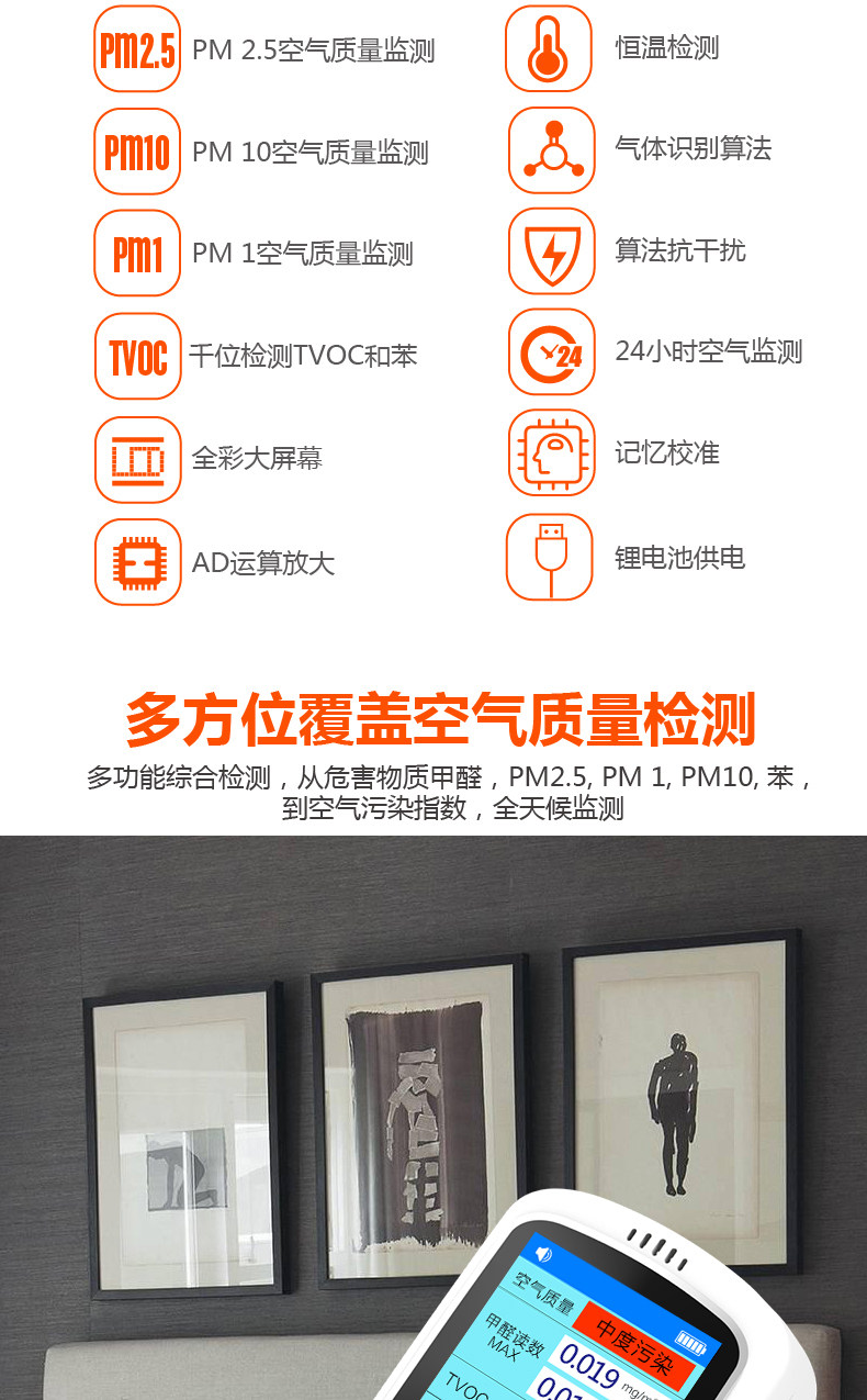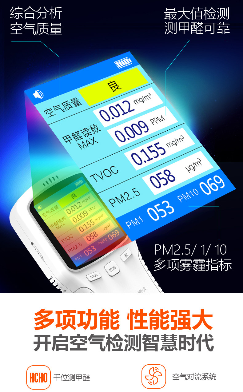 看着挺高大上的,性价比怪高,灵敏度也不错,孩子没事就拿着满屋子测量,家里的空气质量真心不咋滴呀!
