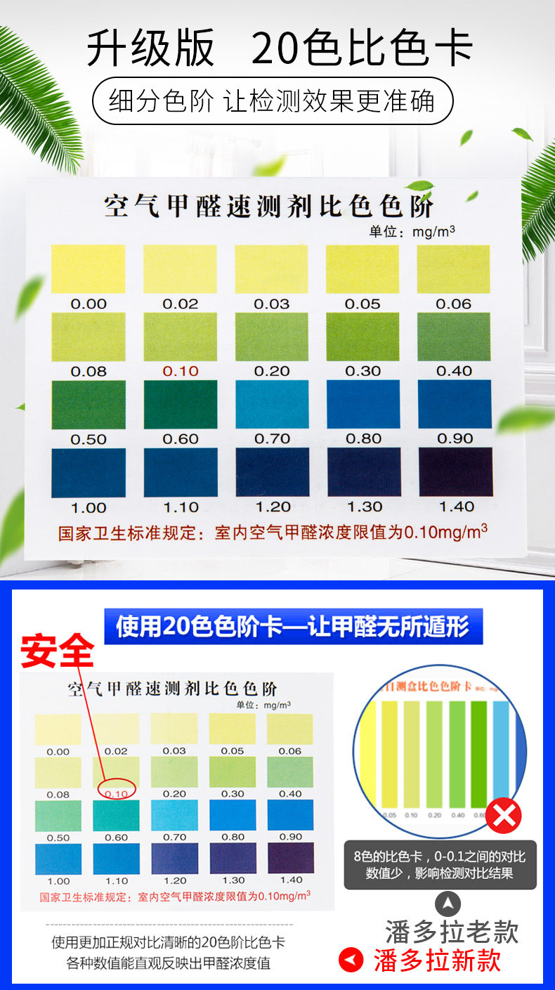 经过多次检测对比,测试的非常准确,一个房间放在两个角落颜色一样,有新家具的地方有点超标,非常满意,不是很严重,宝贝很好与卖家描述的完全一致,非常满意,真的很喜欢,完全超出期望值,发货速度非常快,包装非常仔细、严实,物流公司服务态度很好,运送速度很快,很满意的一次购物、给售后客服诚心点赞。