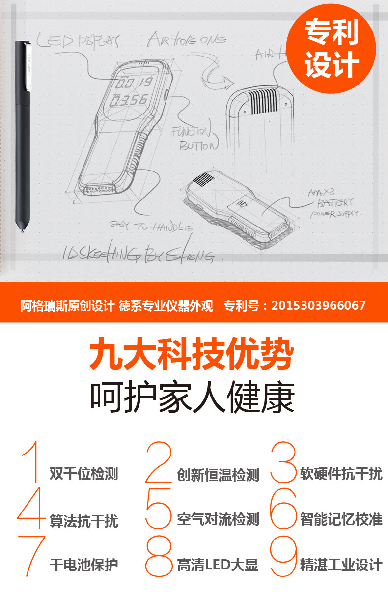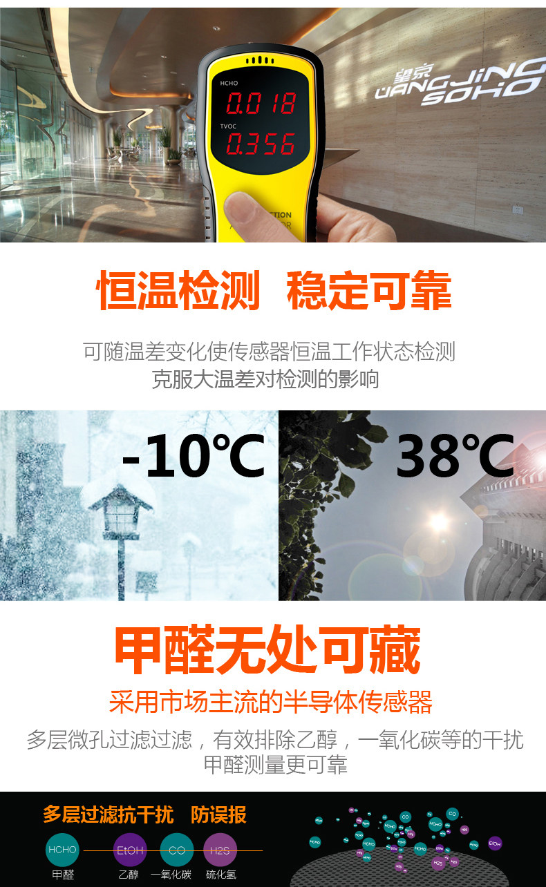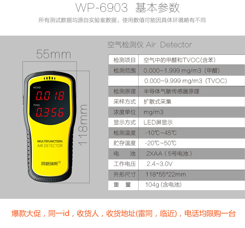 检测仪收到了,包装很好,非常精美,质量也很好的,一看就知道是正品,品牌的就是不一样,特意买来检测新家的,检测一下心里也能放心,一点也不能马虎的;还可以检测车里的甲醛含量,非常实用,发货快,快递的速度也很快的,总 的来说非常满意!买这个仪器很划算,性价比很高,按照说明书操作,很简单,一下就学会了,可以检测甲醛和TVOC,甲醛在0.1,tvoc在0.6以内就是正常的,甲醛超标达到0.3,仪器就会警报!第一次使用的时候需要通风然后校准,检测两分钟后直接读数。设计挺好的。还好买了甲醛检测仪,可以测测放心!仪器拿到阳台通风,数值马上降下来了!检测仪还是很灵敏的,操作简单,方便好用,做工好,功能齐全,质量强硬,正品质量有保障。