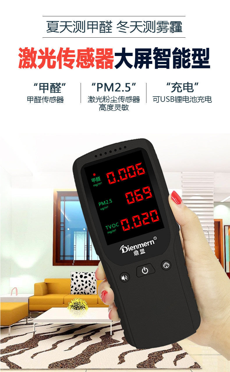 房子刚装修完不久,怕甲醛超标买来试试,东西很好,测试方便,而且很准确!充电的也很方便能用很长时间!