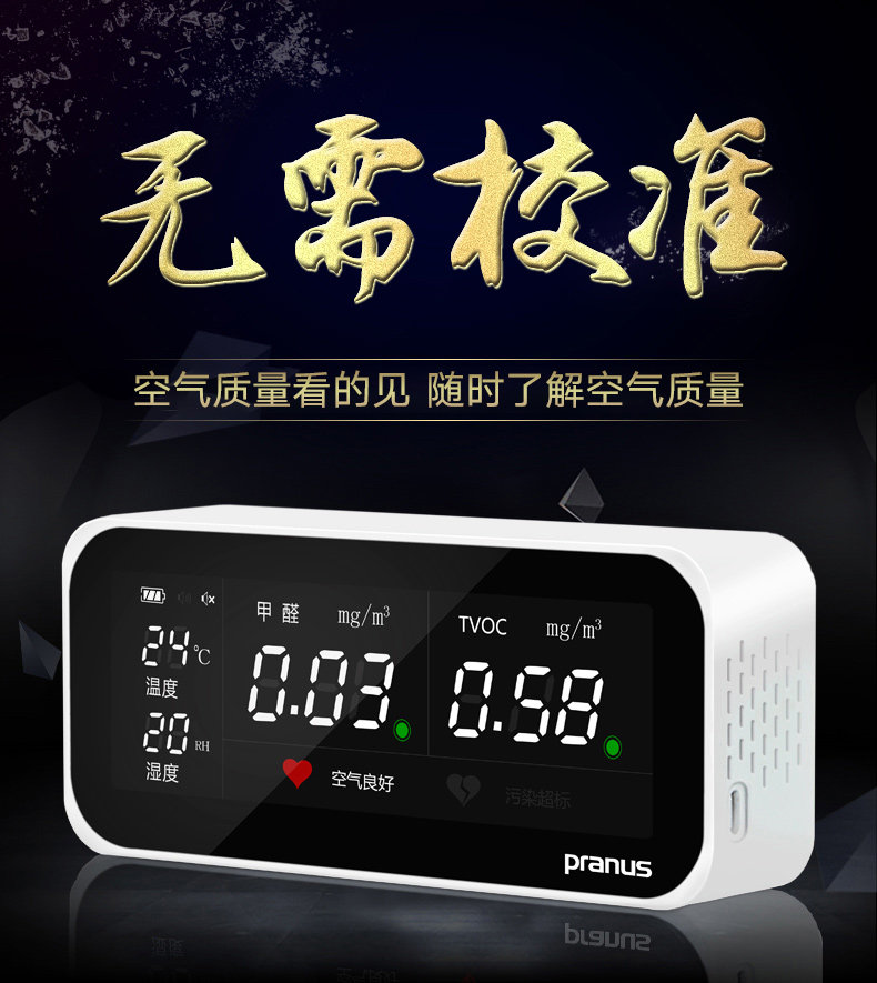 收到后立即测试了房间的甲醛含量,密闭空间里空气质量污染指数超标,开窗通风后恢复到空气质量良好,灵敏度比较高,但是不知道测的数据准不准,也没法和实际数据对比。给个好评。用上一段时间再追评吧!