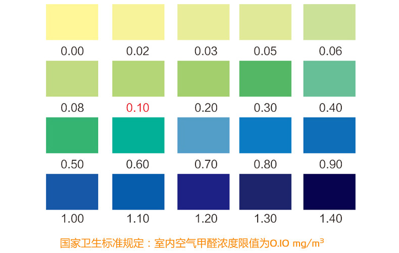 同时测了两次,颜色一样,显示结果是淡淡的黄色,没有甲醛的,这下就放心了。家里有小宝
