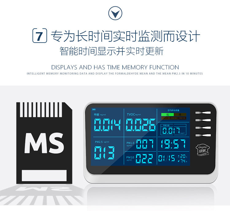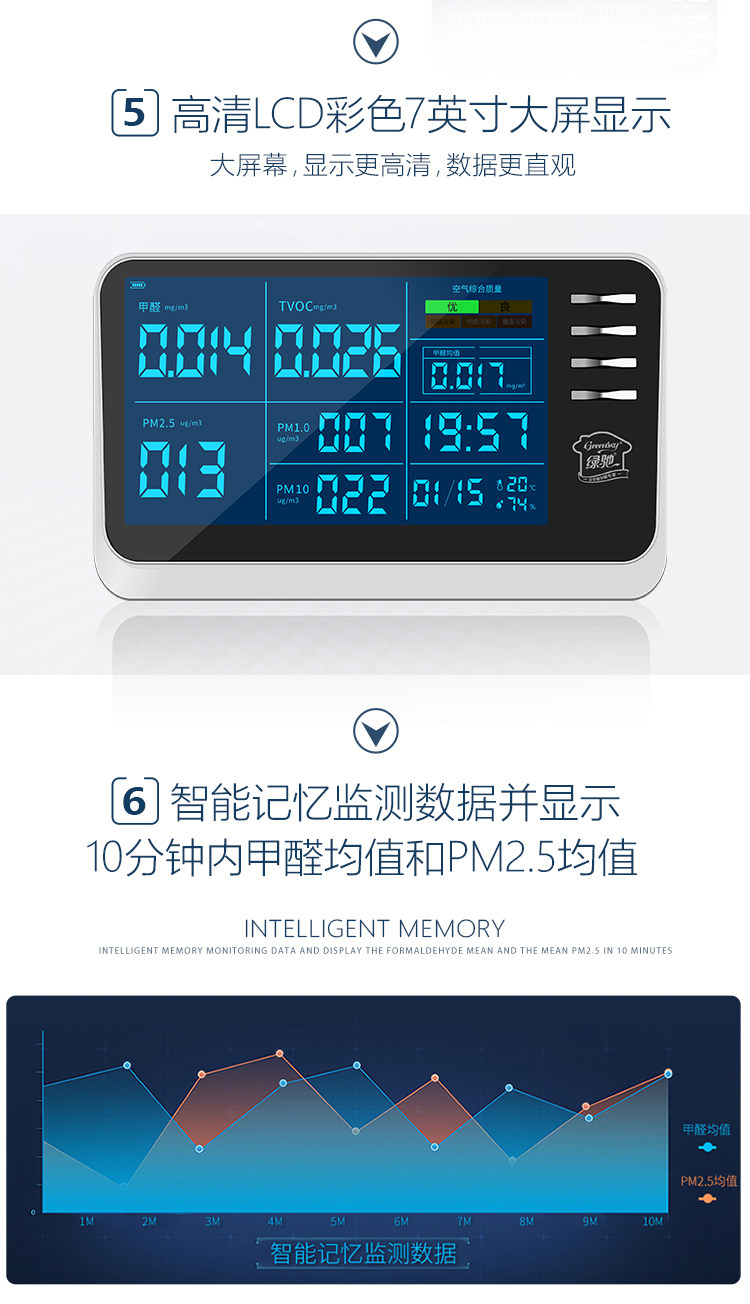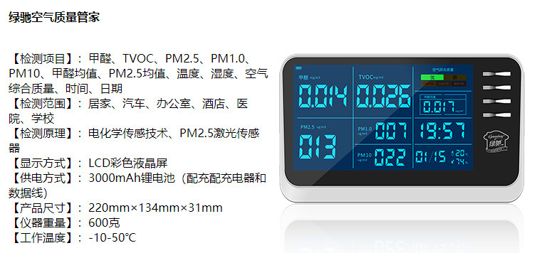 包装很精致,显示屏很大,方便观察数值,3000mAh电池续航时间也比较长,一天一冲没问题,新房装修tvoc有些高,还是治理一下再入住比较放心