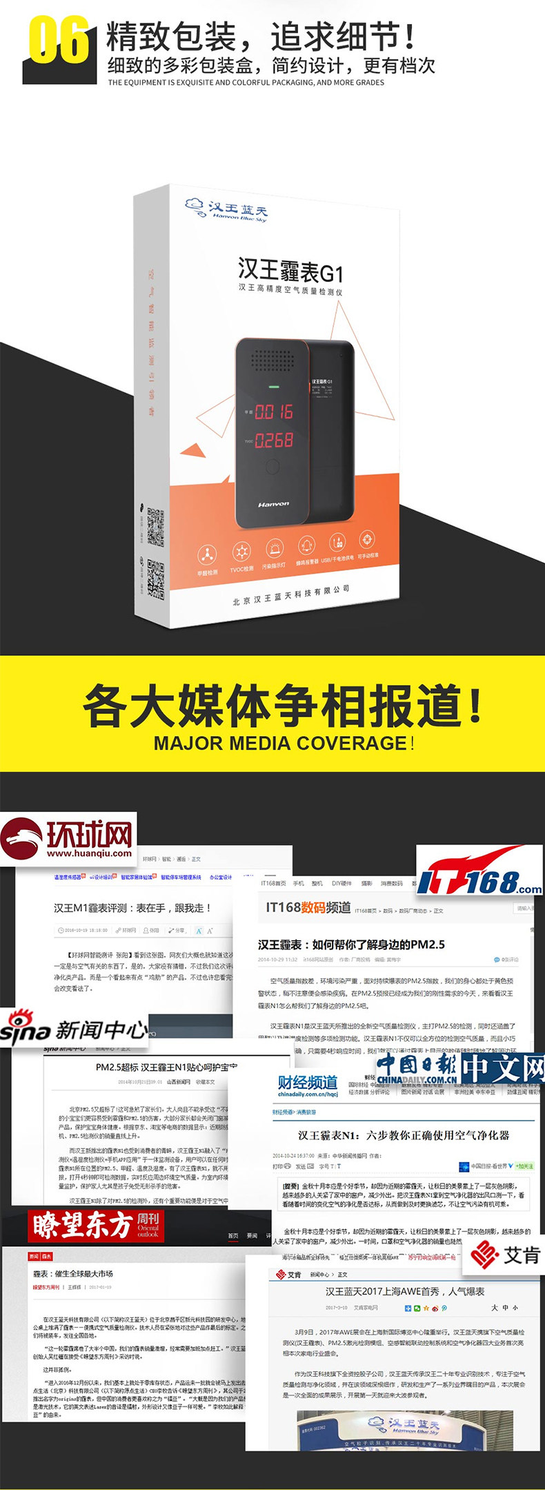价廉物美,发货迅速,股务周到,不愧为汉王,检测仪非常灵敏,操作便捷,以前担心家里甲醛超标,检测后放心多了,其它指标也未超标,可以安心住家了。