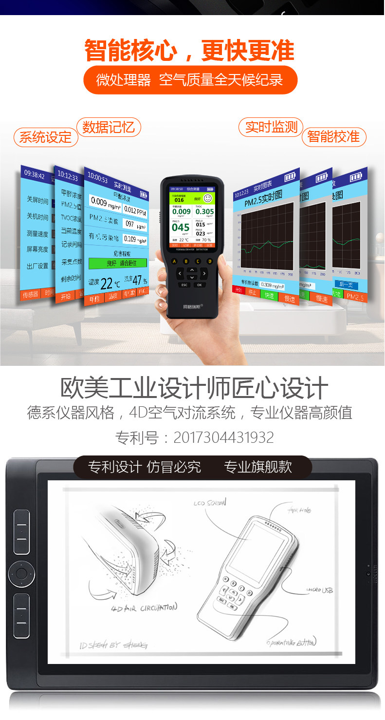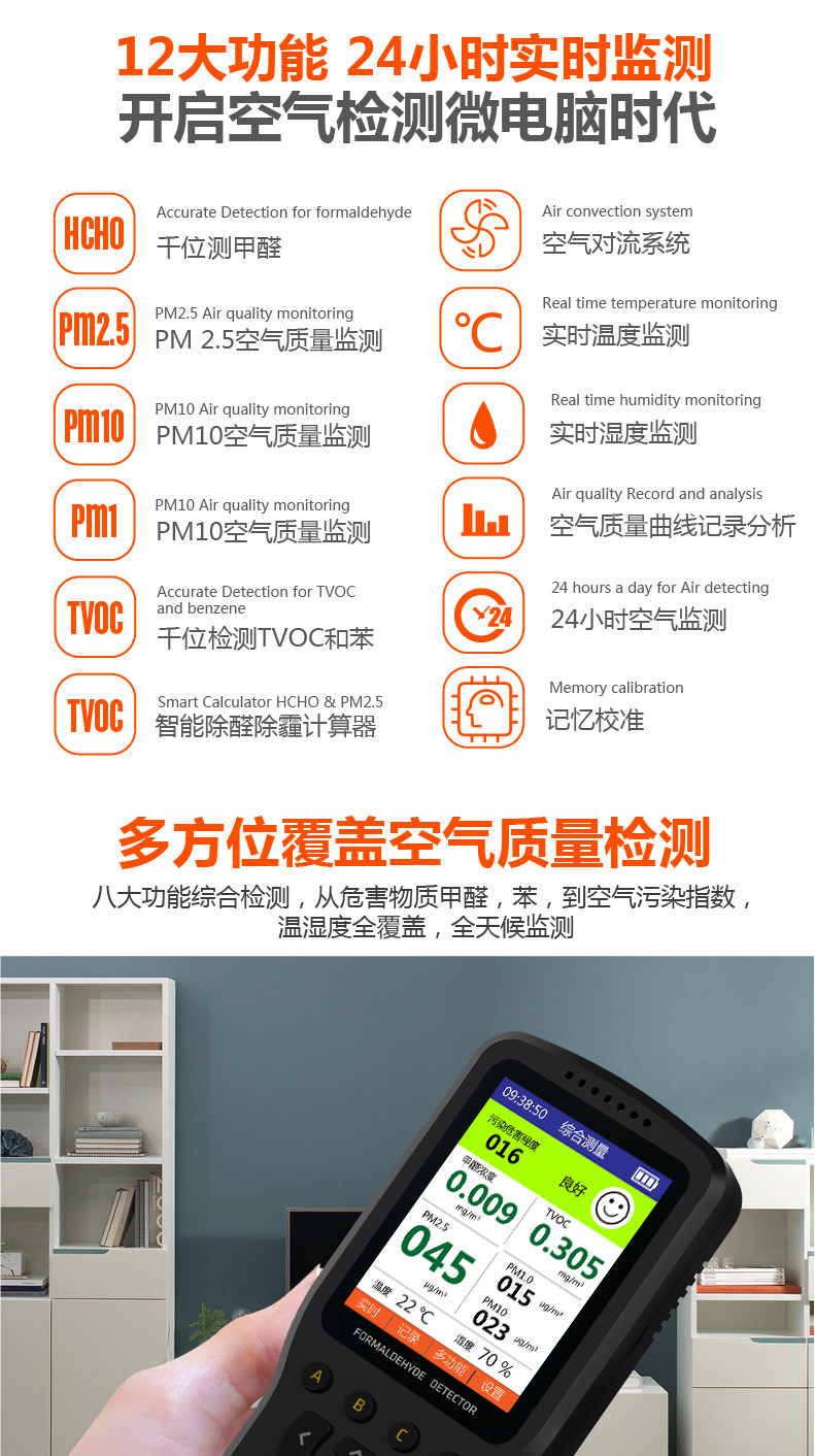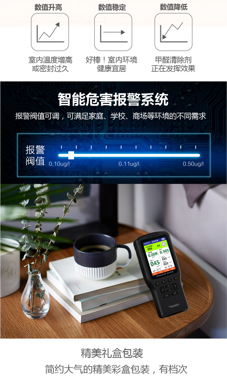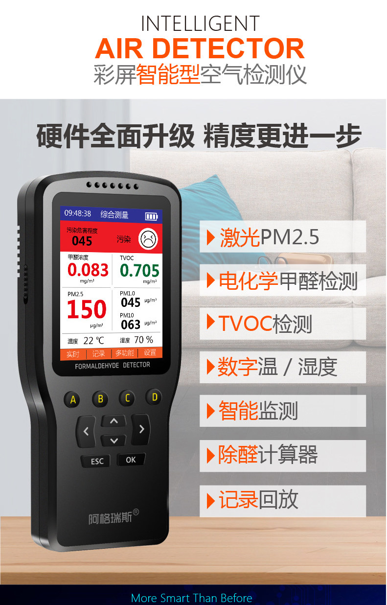 不知道准不准,灵敏倒是很灵敏的,对着检测仪放了一个屁立刻爆表了。带着去住了宾馆,甲醛和苯超标严重,可把我气得,以前不知道吸了多少毒
