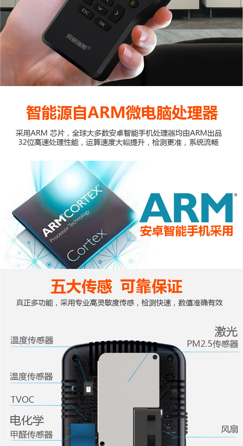货到开包详观说明,开机操作。感受:机器很灵敏,开关窗,靠近呼吸,喷香水,点熏香等数值随即变化。测量值是否准确因无对比难以确定,但数值的变化与感官感受比较接近。操作方面:页面清晰,操作灵敏简单。总评:与网上描述一致,本次购物满意。