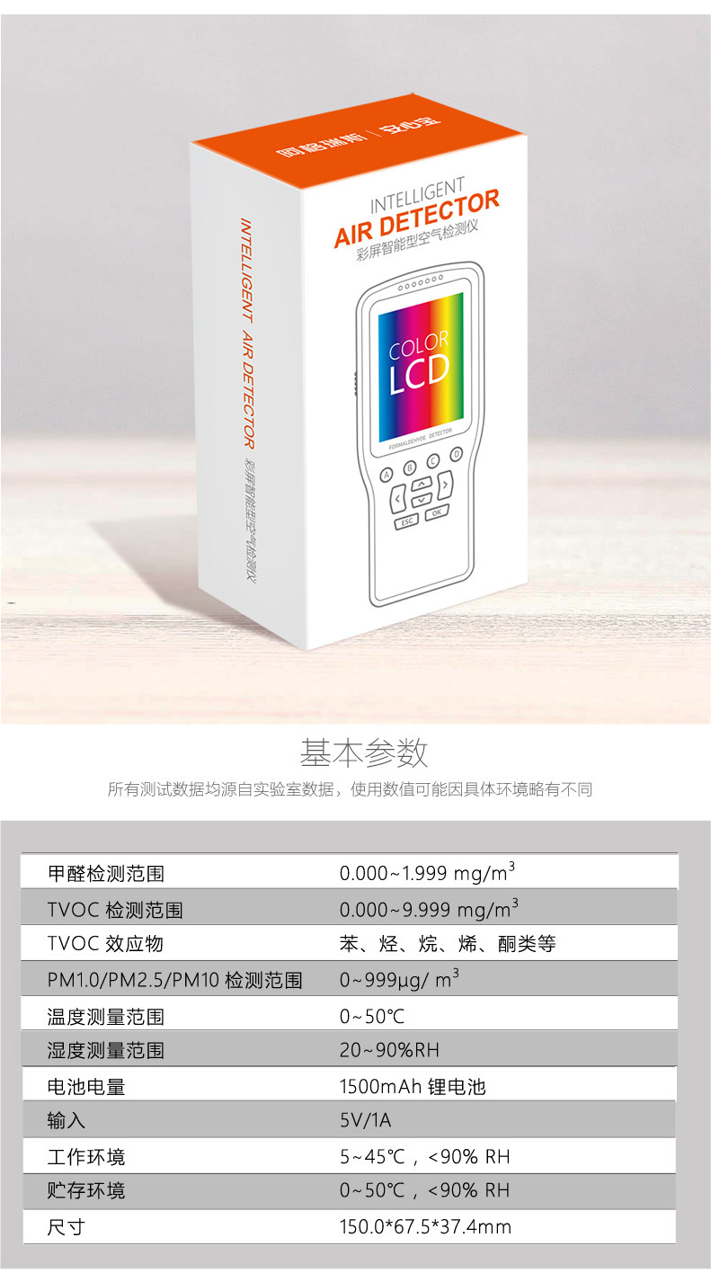 东西不错,之前发来的有点小插曲,客服很快就解决了,服务相当不错,物流也可以,主要是设备很灵敏,用起来也很方便,也不需要什么专业技能,就可以自己测试,第一张是放在空气净化机旁边1分钟PM的测试效果,第二张是放在电暖风旁边的温度测试效果,第三张是放在柜子里的甲醛,TVOC的测试效果,第四张是放在桌子上的测试效果。
