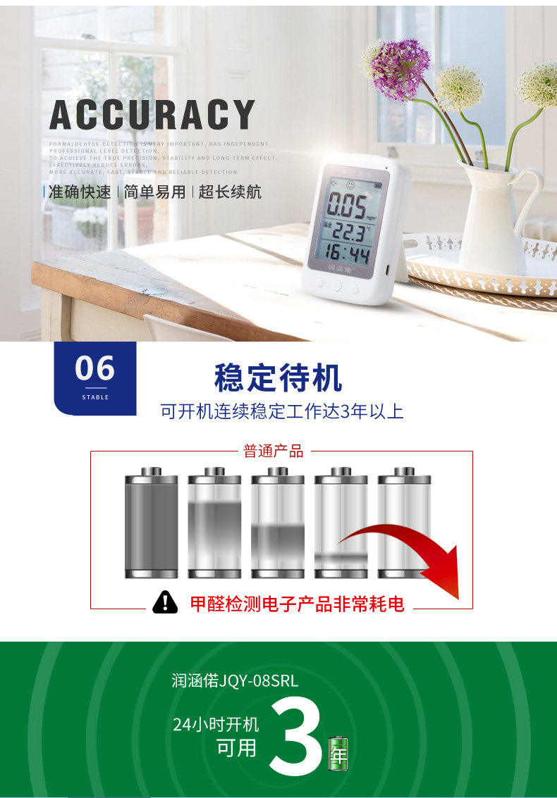 装修完担心甲醛就买了,操作简单,超长待机,还很灵敏,24小时监测,方便实用,值得家庭购买