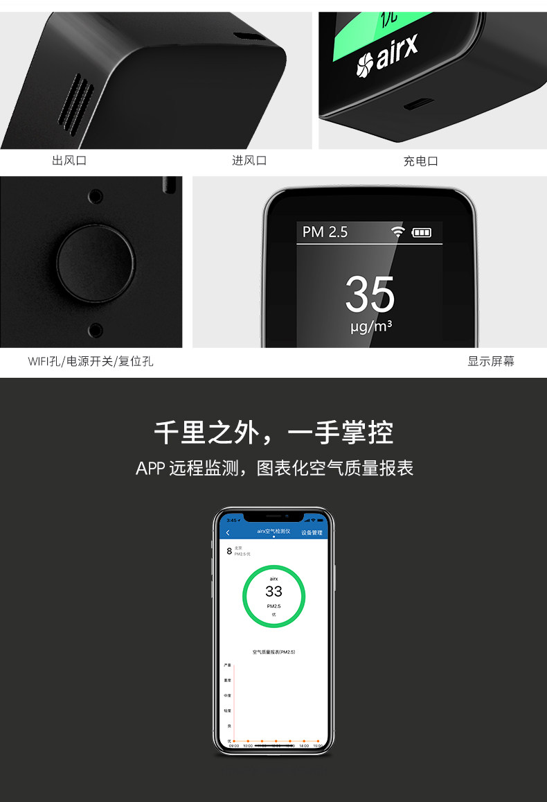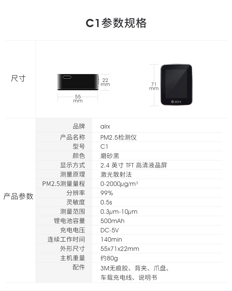 airx空气检测仪家用车载PM2.5激光检测仪C1