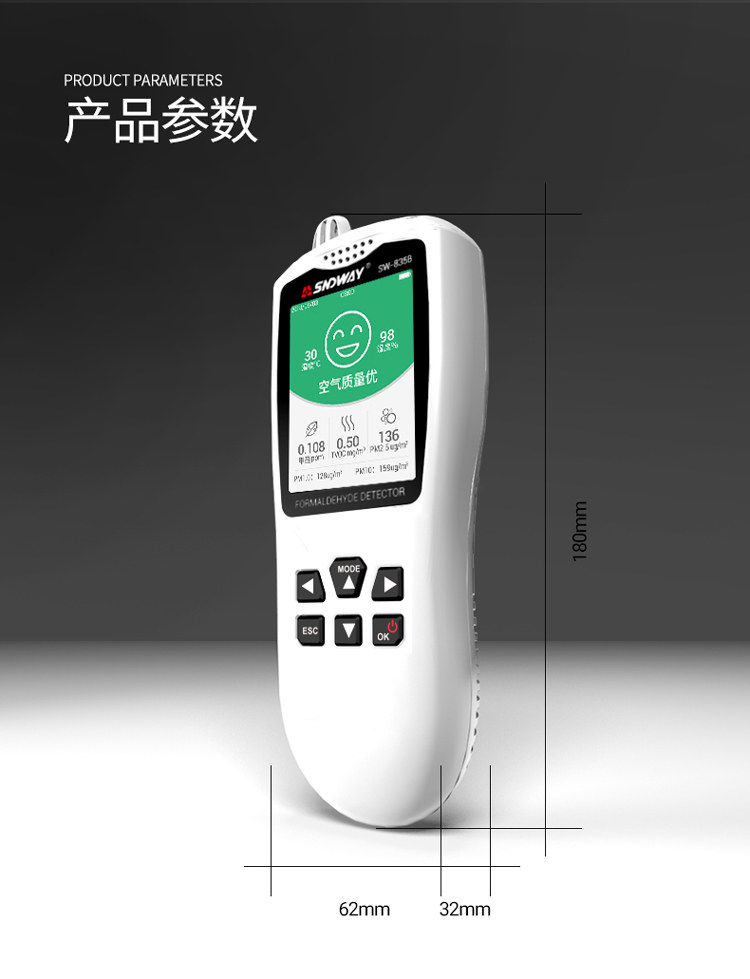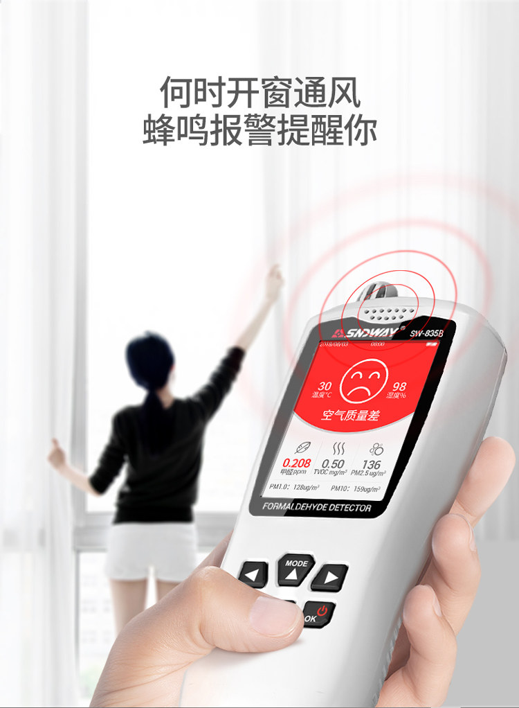 质量确实不错,检测特别敏感,另外物流速度特别快哟!感觉测的还挺准的,我家装修已经十年了买来测测的,就是刚回家的时候确实会读数较高,之后开窗之后数值就下降了,说明检测是准确的,以后要不间断的测一测,确保呼吸在清新的空气中。在房间进行了测试,感觉仪器灵敏、数据准确,非常好用,家用很适合!新买的梳妆台,用仪器测出甲醛也超标,还是要买个检测仪测测才行。各位家里要装修的千万做好去甲醛才好入住。真的很准,其实使用挺简单的,就是刚开始有点迷茫,卖家客服很用心,还有专门给电话指导,马上就懂了,东西很实用