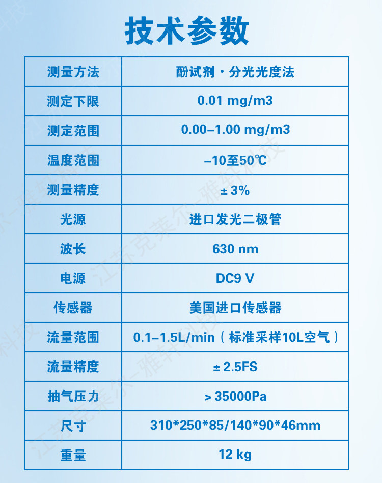 • 测定范围:0.00-1.00 mg/m3