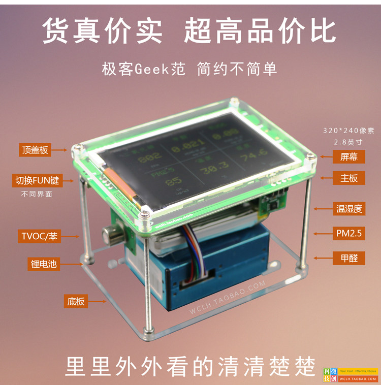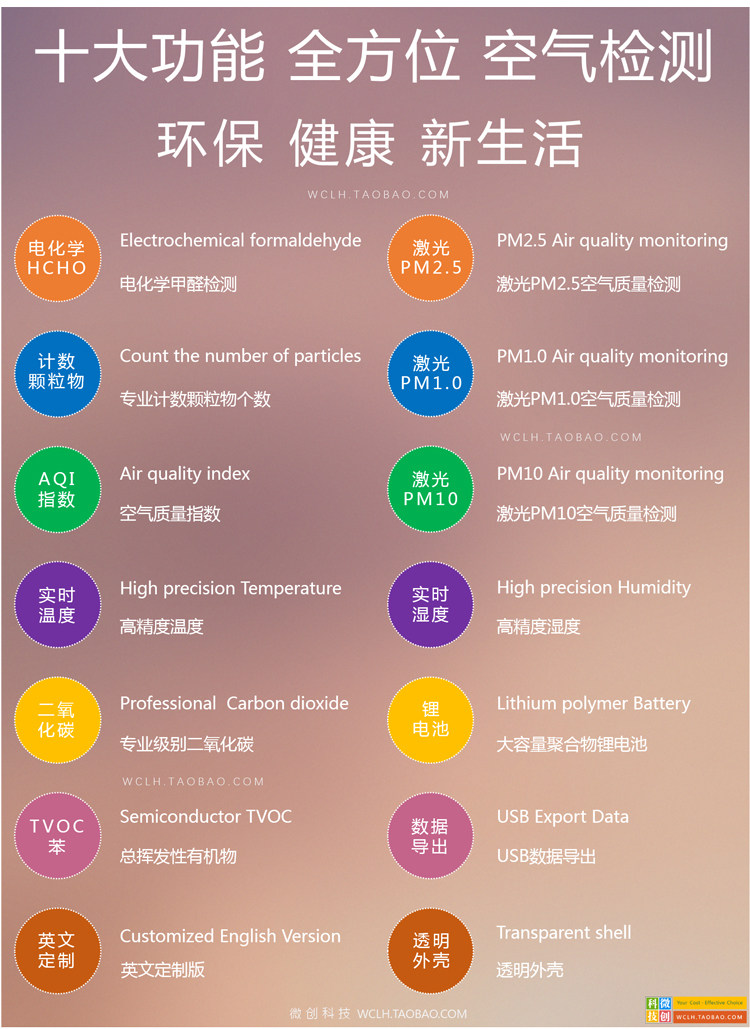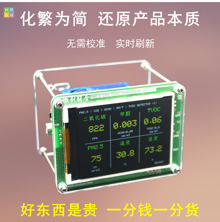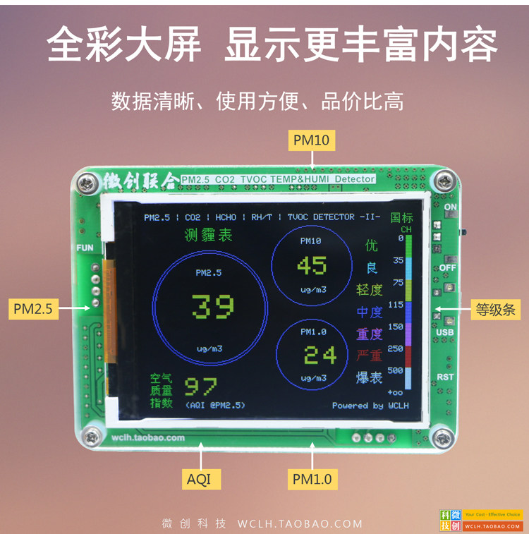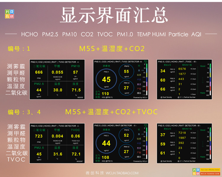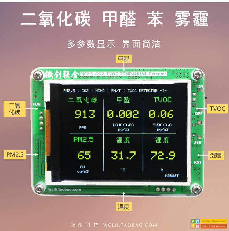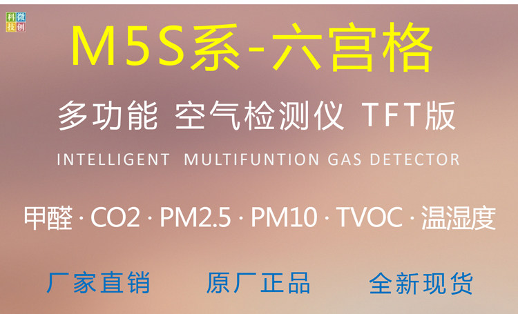 [微创联合科技气体检测仪]M5S 六宫格 家用 PM2.5 甲月销量7件仅售758元